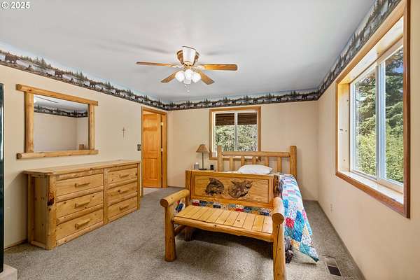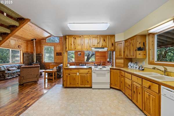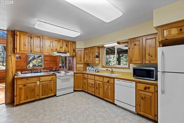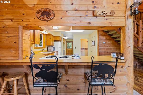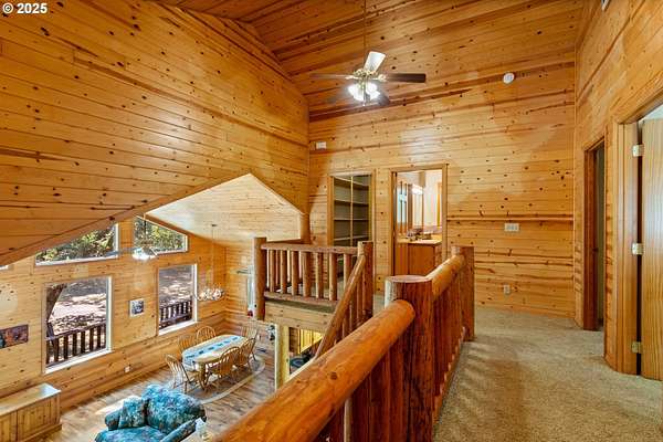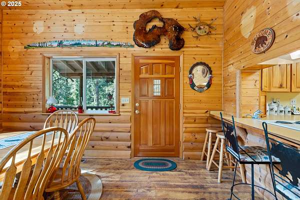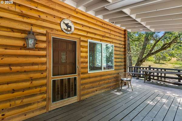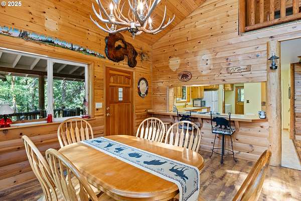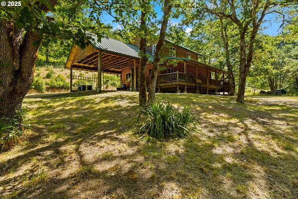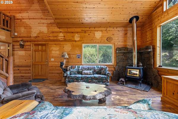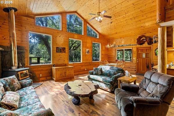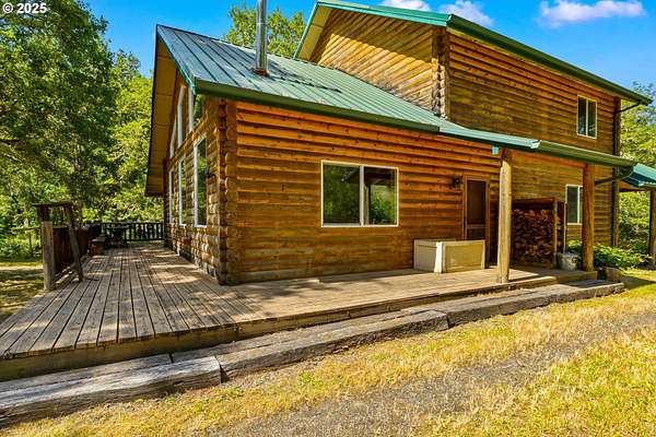 Nestled on 90 acres of private land, this stunning 3-bedroom, 2.5-bath log home offers the perfect retreat for those seeking tranquility and connection with nature. The main home is a masterpiece of rustic craftsmanship, featuring soaring vaulted ceilings, and large windows that bathe the living spaces in natural light. A cozy wood stove anchors the open concept living and dining area, creating an inviting atmosphere for gatherings or quiet evenings. The primary suite on the main level includes a private en-suite bath. Two additional bedrooms provide comfortable accommodations for family or guests. A half bath on the main level adds convenience, while the expansive wrap-around porch invites you to relax and take in the beauty of the surroundings. This remarkable property includes a bonus: a separate 5-acre buildable lot. Whether you envision a guest house, rental property, or another home for extended family, the possibilities are endless. 36 x 36 barn. Connected to city water with a 2500 reserve tank. Marketable timber. The remaining acreage features a mix of open pastures and mature woods, perfect for hiking, hunting (qualifies for 2 LOP tags), or simply enjoying the great outdoors. Don't miss the chance to make this extraordinary property your own.