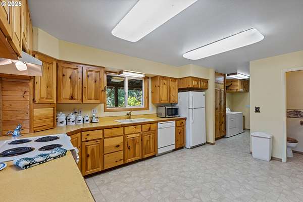 - Appliance Garage, Dishwasher, Free Standing Range, Free Standing Refrigerator, Pantry, Range Hood