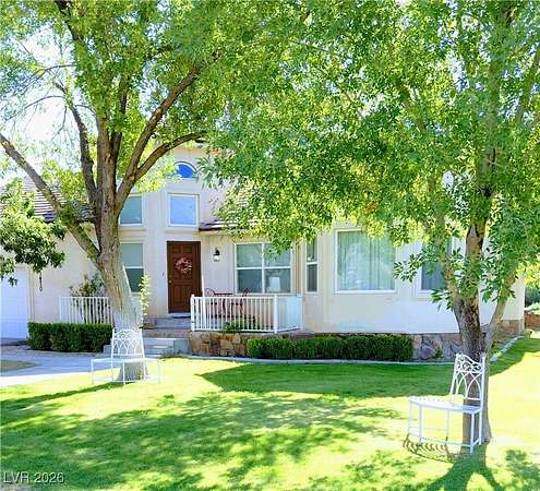 Est $3,495/moDiscover your own slice of paradise in Moapa Valley! This exquisite property is 2.11 acres of lush, vibrant land with mature trees. Centered around an open floor plan, you will find 3 bd & 2 ba, as well as a dream kitchen! Sunlight pours into every room, allowing you to bask in the breathtaking views that surround you.