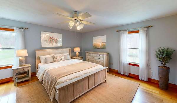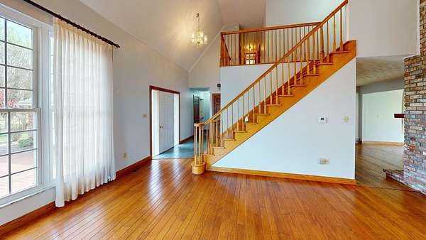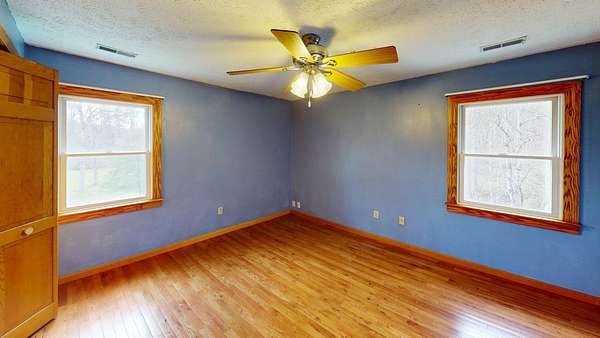 Room to breathe! Escape to approximately 78.9 acres of scenic countryside and experience the perfect blend of comfort, space, and privacy. This beautiful 3-bedroom, 3-bath home offers a warm and inviting atmosphere with thoughtful features throughout. The kitchen is the heart of the home, complete with a cozy gas log fireplace and a dining area surrounded by windows that bring in an abundance of natural light and picturesque views of the property. The spacious living room showcases a cathedral ceiling and an additional fireplace, creating an open yet comfortable space ideal for relaxing or entertaining. The first-floor primary suite features a walk-in closet and a private bath. Downstairs, a huge unfinished basement offers additional storage or future living space. The home is also equipped with a Generac generator along with a 2-car attached garage. Outside you can take in the beauty and versatility of approximately 78.9 acres that can be used for farming, recreation, or simply enjoying the outdoors. The property includes a large 39' x 31' barn with loft space plus an additional 11' x 25'9" area—possibly for equipment, hobbies, or livestock. 12 Month Guard Home Warranty! Some virtual staged photos.
