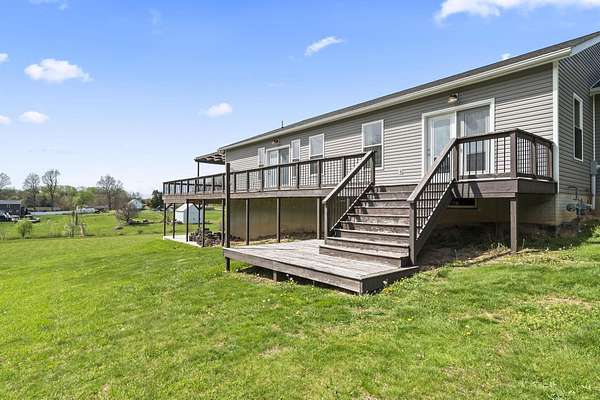 Enjoy outdoor living at its finest with a spacious wraparound deck and charming front porch, perfect for relaxing or entertaining family and friends. A substantial 28' x 28' attached garage adds convenience and functionality.