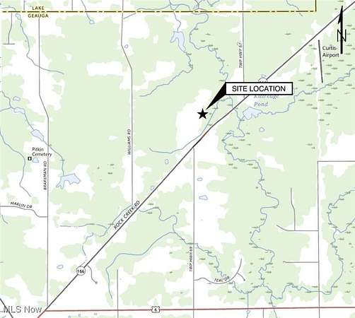 From Chardon Square, take US-6 east toward Hambden. Continue northeast on OH-166 (Rock Creek Rd). Property is 1.9 mi on Rock Creek Rd, north side, approximately 0.2 mi past Bascom Rd