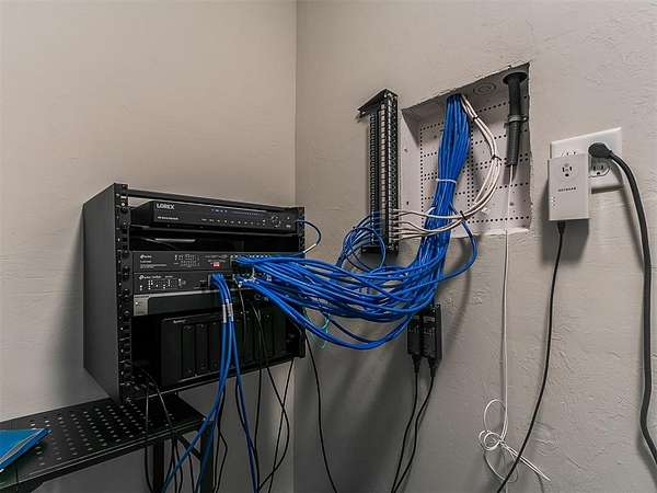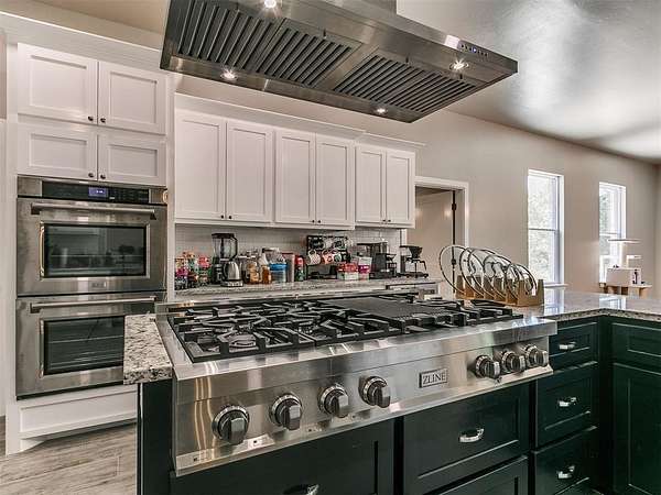 Seller is offering $5,000 toward closing costs. This single-story 2,908 sq. ft. home sits on 1.5 acres backing to quiet woods, offering country space without giving up modern connectivity. The open floor plan provides 42-inch minimum traffic flow throughout, including the kitchen, with large windows and tile flooring that keep the home bright and functional for both daily living and entertaining. The kitchen is built to perform, featuring a 48 inch gas cooktop, granite island, column refrigerator and freezer, double wall ovens, under-counter microwave, beverage cooler, and a large walk-in pantry. It opens directly to a dining area that comfortably seats 10. The primary suite and living room open to a covered patio with wooded views. A separate bonus room includes its own private patio. The primary suite, junior suite, and third bedroom all have walk-in closets. Interior accessibility includes 36-inch doors throughout; the bonus room patio door is 32 inches wide. Designed for a connected lifestyle, the home includes 1 Gbps symmetrical fiber internet through the local electric co-op, with fiber run directly to a dedicated tech closet. Inside is a 10 Gbps wired network, two high-speed Wi-Fi access points, 36TB of network storage, and a full 4K exterior surveillance system. Additional features include a foyer with coat room, extensive hallway storage, oversized 2-car garage with polyurea finish, washer and dryer, and a whole-home water purification system. Quiet country setting. Serious tech capability. One well-designed home.