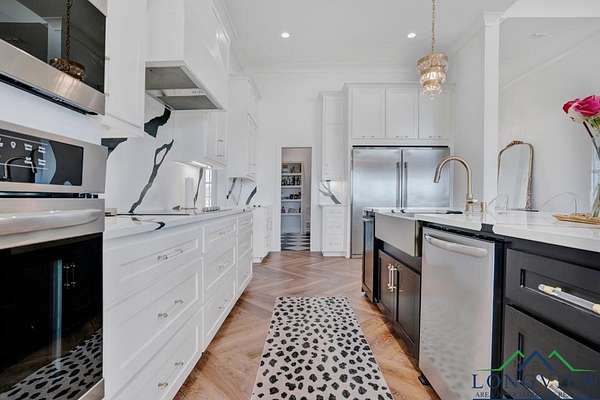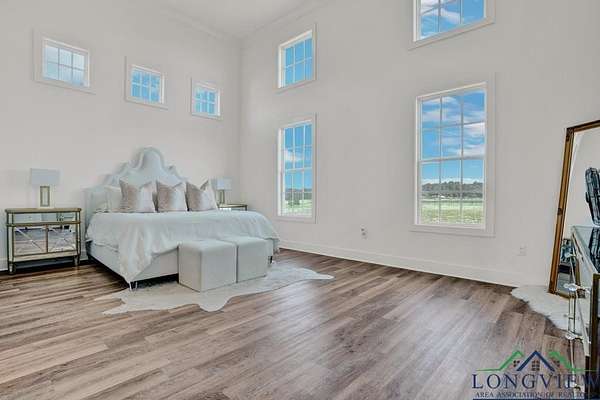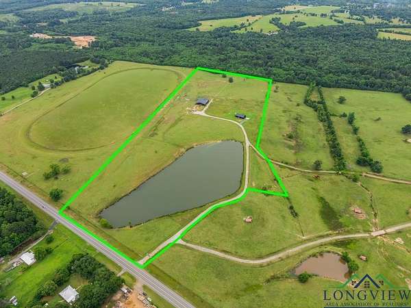 Turnkey 46-Acre Ranch with Barndominium, Lake, and Livestock Facilities in Upshur County. This is a rare opportunity to own a beautifully improved 46-acre tract in Upshur County, designed for livestock, equine operations, or a private country retreat. Built in 2021, the modern barndominium offers 3,006 square feet of luxurious living space featuring an open floor plan, 3 spacious bedrooms, 3.5 baths, and high-end finishes throughout. Enjoy quartz countertops with a waterfall edge, a large walk-in pantry, and oversized closets. Outside, a newly rebuilt 9,500-square-foot barn is fully equipped with hay storage, working pens, and room to accommodate your operation with ease. The property is fully enclosed with durable cable and pipe fencing, with multiple cross-fenced pastures for rotational grazing or separate turnout areas. Enjoy fishing and recreation with a stunning 7.5-acre stocked lake ideal for livestock water access and peaceful outdoor enjoyment. Conveniently located off State Highway 155, just minutes from US HWY 259, and a short drive to Longview, Gilmer, Texarkana, and regional airports, this property combines modern comfort with country utility.