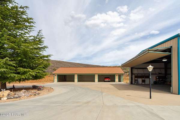 Car lovers dream! This amazing property situated on 15 acres features a 3469 sqft home with a 5 car attached garage & a detached 8 car garage, plus another detached garage capable of holding 6-9 vehicles or a large RV. There is also a large connex box on the property great for storage. There is a concrete driveway leading you to the property along with a massive amount of concrete around the main part of the property. Lots of ideal parking. This beautiful property features a wonderful great room with vaulted ceilings, wood, tile, & carpet flooring, automated blinds, & the most warming in floor hot water heat. The split floor plan is an ideal guest set up. The home was originally a Bed & Breakfast so each bedroom is a suite with a 3/4 bathroom. There is a wonderful screened room to sit