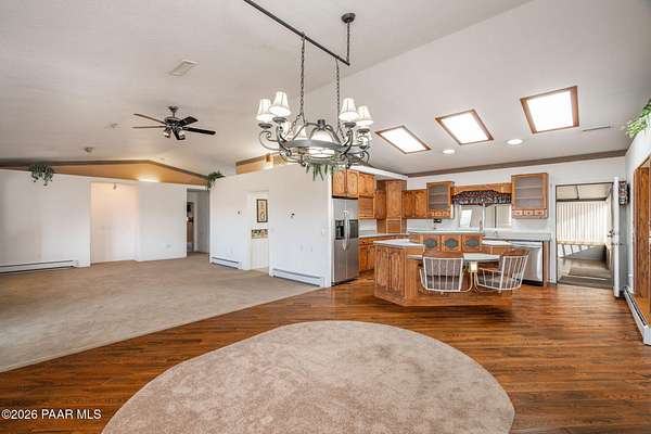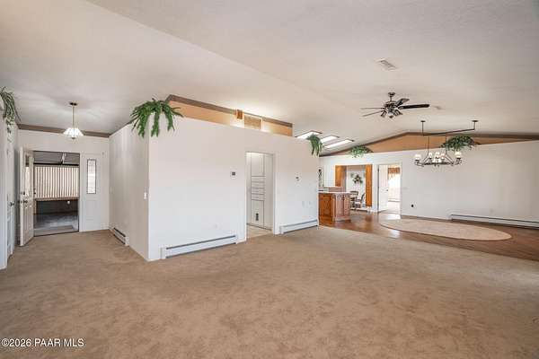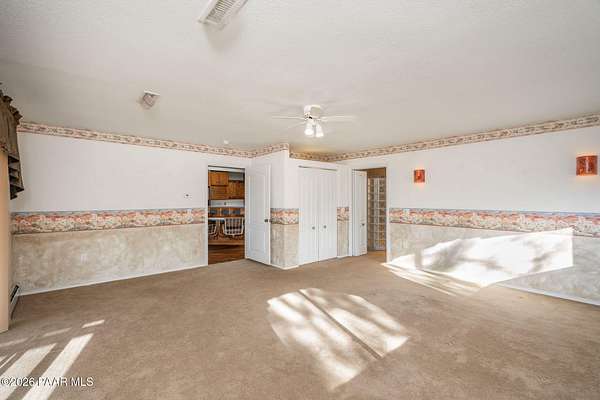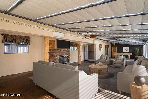 Car Lovers Dream! This amazing property situated on 15 acres features a 3469 sqft home with a 5 car attached garage + a detached 8 car garage + another detached garage capable of holding 6-9 vehicles or a large RV. There is also a large connex box on the property great for storage. There is a concrete driveway leading you into the property along with massive amounts of concrete on the main part of the property. Lots of ideal parking. This beautiful property features a wonderful great room with vaulted ceilings, wood, tile & carpet flooring, automated blinds,& the most warming in floor hot water heat. The split floor plan is an ideal guest set up. The home was originally a Bed & Breakfast so each bedroom is a suite with its own 3/4 bathroom. There is a wonderful screened porch to sit on and enjoy the vast views of Bradshaw Mountain, Glassford Hill & the valley below. The owner has put their whole heart into caring for & maintaining this incredible property. Don't miss out on this amazing place! You have to see it to appreciate it, call today for more information.