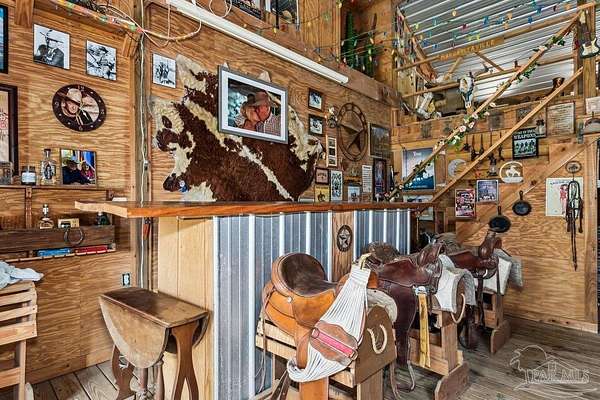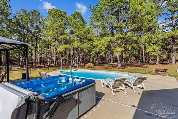 A Horse Lover's Dream on 70 Stunning Acres! Welcome to an extraordinary 70-acre estate, offering endless possibilities and the ultimate retreat for nature lovers, outdoor enthusiasts, and equestrians alike. This breathtaking property has a perimeter fence around all 70 acres, with additional cross-fencing for rotational grazing, making it ideal for horses or other livestock. Explore miles of scenic trails right on your own land, fish in your very own stocked pond, or enjoy a night under the stars at your private campsite-complete with a camper that conveys with the property. Three natural springs run through the land, creating a picturesque and serene environment where wildlife thrives. The meticulously maintained 3-bedroom, 2-bathroom, 1,870 sq. ft. home features a full-length covered porch that allows you to soak in the peaceful views of your private paradise. The open floor plan has an oversized great room, a spacious master suite with two oversized closets, and a cozy fireplace. The split floor plan places the two generously sized guest bedrooms on the opposite side of the home, offering privacy and comfort. The kitchen is well-appointed with newer appliances-a brand-new dishwasher, plus a stove and refrigerator just three years old. The home is also equipped with a Generac generator (4 years old), and has a new roof (2023). Step outside to your personal backyard oasis, complete with an in-ground pool and a relaxing hot tub. Equestrian amenities include a horse barn with a tack area and stalls, plus multiple barns for storage. One barn has been transformed into a Western-style saloon, featuring saddle bar stools, karaoke equipment, and the perfect setup for entertaining. Two additional pole barns provide ample parking for oversized vehicles, including a living-quarters horse trailer or RV. Whether you're looking for a private equestrian estate, a recreational getaway, or an entertainer's paradise, this is a rare opportunity to own a slice of heaven.