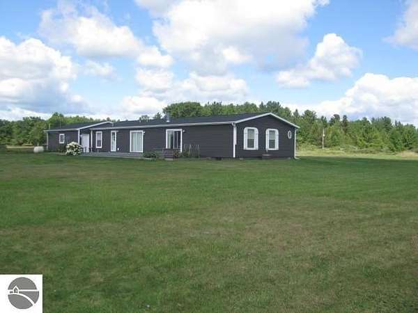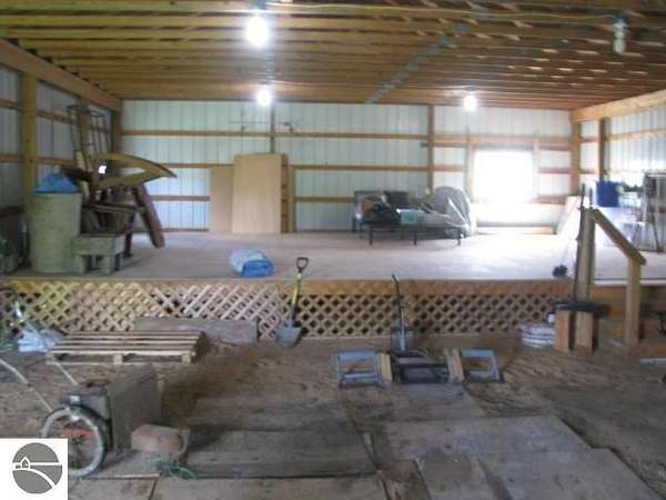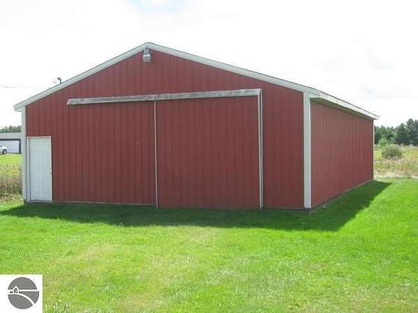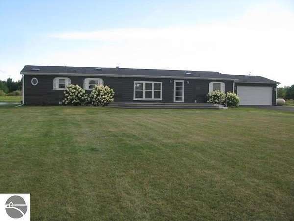 19.5 Acres, mostly open, level and well maintained. Almost 2 acre "L" shaped pond that wraps around the three bedroom, two bath, 1755 sq.ft. home built in 2003. Living room and family rooms share the double sided wood burning fireplaces. Over the past few years, the home owner has completely redone the kitchen, both bathrooms, and flooring inside. Outside, vinyl siding, shingled roofing and both front and back decks. The attached garage has a 2100 gallon fresh water holding tank for the homes domestic water supply. About five acres of evergreen pine trees are at the back beyond the pond. This pond is about 18 feet, has three aerators, and is stocked with fish. The 30x40 pole barn has electric and lots of room for storage. Located near the end of a paved dead end road, private and peaseful setting, with plenty of wildlife, about a mile from Lake Huron.