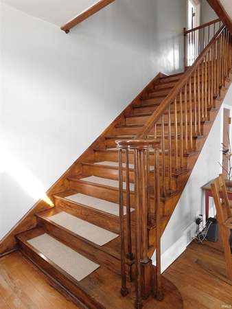 This GRAND brick home originally built for an Indiana State Senator which was the heart "Hurricane Farms" with over 3800 square feet and a full unfinished basement. With 5 bedrooms, 3 full baths sitting on 5.4 acres enjoy beautiful views, quiet, peaceful surroundings. Small town feel with amenities near like Bedford and Bloomington. The roof was replaced in 2021, solar panels were added in 2021 with battery back up. There is also a 40X62 pole barn with a loft area for an office, built in 2021 with electric that has it's own 200 amp service not attached to the house. Inside you will find original red oak and maple hardwood floors, the kitchen has all newer appliances. There are two stairways, one in the front of the house and one in the back for access to the upstairs. The gun safe does stay. Call to schedule your showing today!