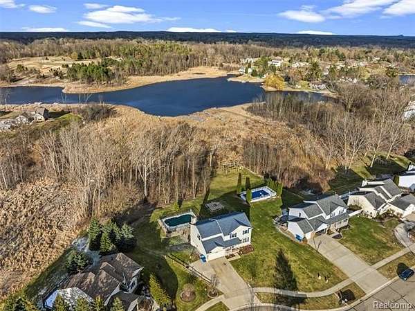 Set on the largest lot in the neighborhood with nearly 2 private acres and frontage on McCully Lake, this updated walkout Contemporary home delivers over 3,000 square feet of finished living space, a brand-new inground pool, and a rare combination of privacy, water, and convenience—without HOA restrictions and situated in a cul-de-sac.