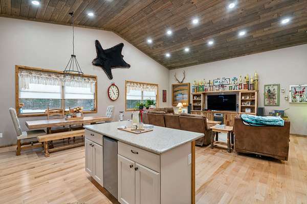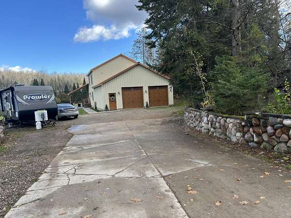 Welcome to this beautifully crafted, newly built two-story home set on 24.24 acres of serene, private land. The approach makes a grand first impression, with a tree-arched driveway bordered by a charming stone hedge that draws you in. Inside the cathedral-ceiling living area offers expansive views of the manicured lawn stretching toward the Sturgeon River, with over 1,400 feet of frontage. This is a desirable waterway-renowned for fishing, tubing, kayaking, and year-round recreation. Turnkey home features luxuriously soft carpeting and a 30'x30' attached garage for everyday convenience along with a 30'x54' pole barn. This is a remarkable property that seamlessly blends craftsmanship, comfort, and the natural beauty of Northern Michigan. Outdoor enthusiasts...great hunting on this acreage!