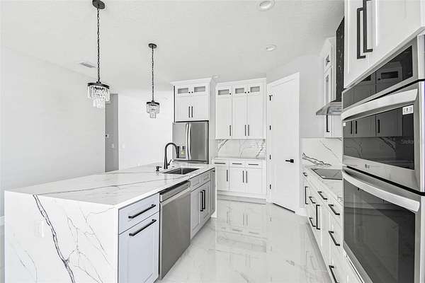 Step inside to discover a thoughtfully designed floor plan featuring 4 bedrooms, 2 full bathrooms, and open-concept living spaces that allow natural light to dance through the home. The gourmet kitchen is a chef's delight, boasting top-tier appliances, quartz countertops, ample cabinet space, and a breakfast bar that flows seamlessly into dining and family areas. Elegant finishes and designer touches throughout--such as luxury vinyl (or wood/ tile) flooring, crown molding, large windows, and custom lighting--bring sophistication to every corner.