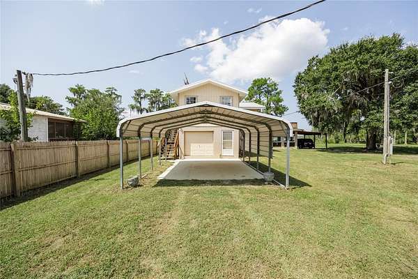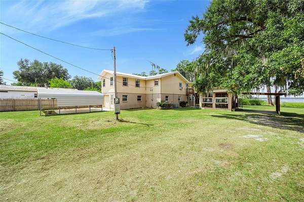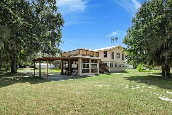 Under contract-accepting backup offers. Stunning Lakefront Home on Lake Sampson - Multi-Functional Living with Scenic Views. Welcome to this exceptional lakefront property offering breathtaking views of beautiful Lake Sampson. This unique residence functions as two separate living spaces, making it ideal for multi-generational living, rental income, or a weekend retreat. The home features a NEW metal roof in 2019 and dual A/C systems (2016 & 2006). The upper level includes 3 bedrooms and 1 bathroom, along with a spacious living area. The lower level offers a generously sized 1 bedroom, 1 bath unit with a large kitchen featuring granite countertops, wood cabinetry, tile flooring, an oversized island, and an expansive walk-in pantry. Enjoy the peaceful surroundings from the large screened lanai with ceiling fans--perfect for sipping your morning coffee or unwinding in the evening while taking in the stunning sunrises and sunsets over the lake. Additional features include: Three large pole barns, oversized one-car garage, Dedicated laundry shed, Extra storage/tinker shed, Multiple water spigots throughout the property, ideal for gardening enthusiasts, A variety of mature fruit trees, including Meyer lemon, kumquat, and tangerine. The property is served by Clay Electric and offers endless possibilities--whether you're seeking a primary residence, an income-producing rental, or a tranquil weekend escape. This peaceful setting is perfect for fishing, boating, water skiing, or simply relaxing. Don't miss this rare opportunity--call today for more information or to schedule your private tour.