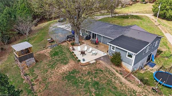 This private 5-acre property delivers!! Fully replaced insulated metal roof with 1.5” foam panels (2023)—not a roof-over—complete with ice and water shield for superior durability, plus new gutters with leaf guards (2024). HVAC replaced in 2024 with transferable 10-year parts and labor warranty (with maintenance agreement), along with a new well pump and 50-gallon water heater (2023). Inside, enjoy butcher block countertops (2022), gas stove/oven, gas logs (2025), and a built-in Browning fire-rated safe. The second bath was fully remodeled in 2025 with new plumbing, subfloor, tub/shower, vanity, lighting, and ventilation. The exterior is ready for your lifestyle with a 24x24 two-story storage building (new vinyl siding & insulated metal roof), RV hookup, perimeter fencing with multiple gated entrances including solar/battery-powered gate, fenced pasture (approx. 3–3.5 acres), treehouse, livestock shed, and chicken coop with birds included. A rare, fully equipped property!
