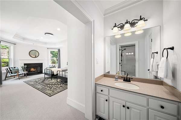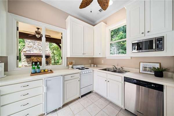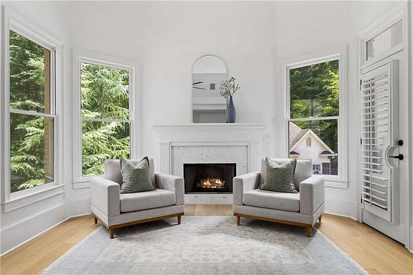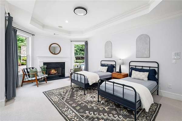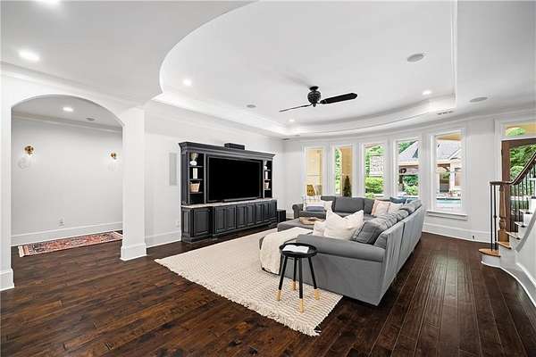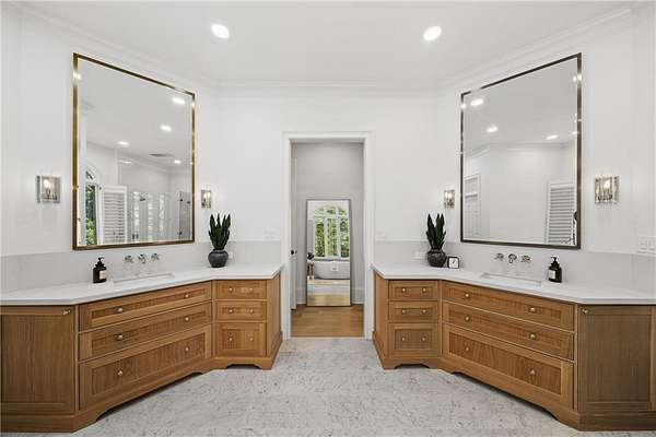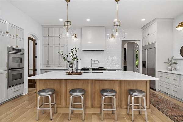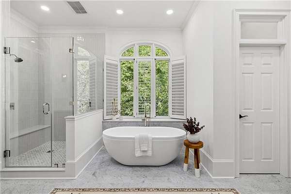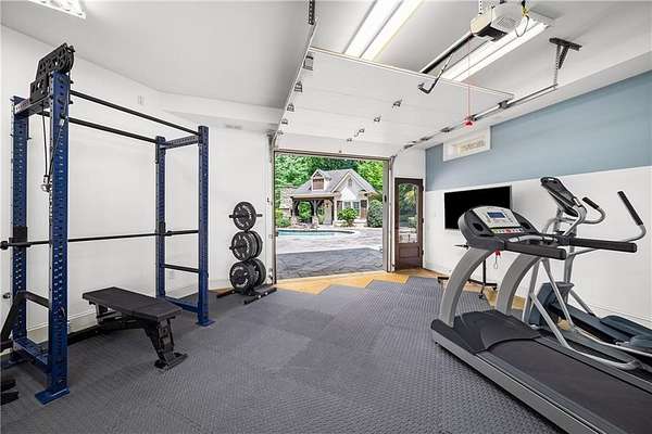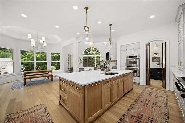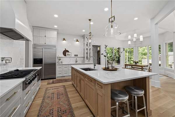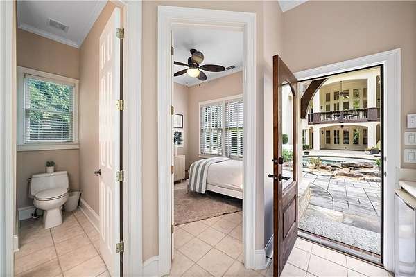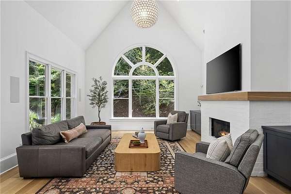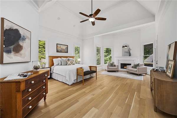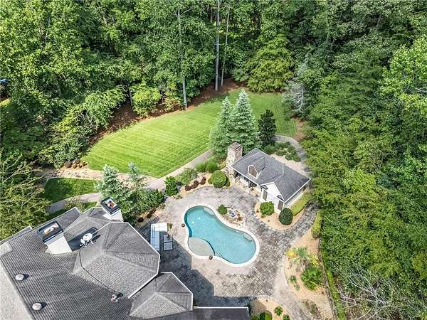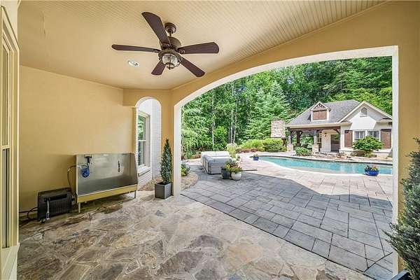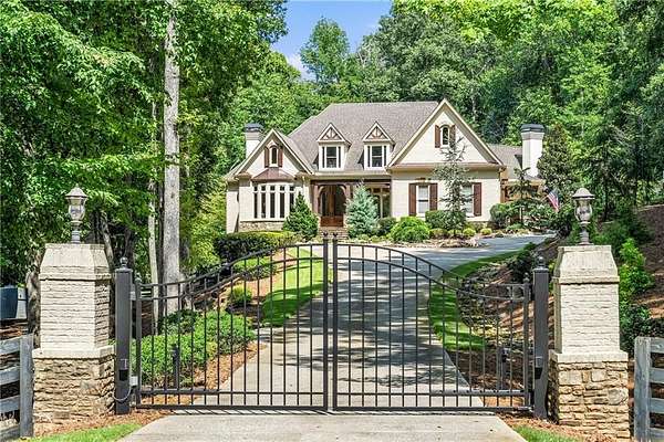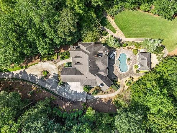 Beyond a stately gated entry, a tree-lined drive winds to this expansive three-acre estate in the heart of Milton. Moments from downtown Alpharetta, Crabapple, award-winning Cambridge High School and nearby private schools, the property offers privacy with proximity to the area's most sought-after amenities. A manicured island anchors the circular motor court, setting the tone for the welcoming covered front porch. Painted brick, stacked stone and warm wood accents create a timeless exterior that flows seamlessly to the inviting interior. Double doors open into a gracious foyer flanked by a fireside office with custom built-ins and a cathedral ceiling on one side, and a formal dining room with an adjoining butler's pantry on the other. Fresh paint throughout and new wide-plank white oak floors extend throughout the main level and make the home feel bright and open. Truly magazine-worthy, the renovated kitchen features floor-to-ceiling cabinetry, a counter-to-ceiling tile backsplash, an oversized island with seating, stone countertops, a prep sink, and professional-grade stainless steel appliances, including a gas range with a pot filler. A casual dining area provides access to the covered porch, while a fireside keeping room with a soaring cathedral ceiling showcases expansive windows framing views of the private backyard. A newly added scullery, an all-new half bathroom and a large laundry room with abundant storage, a utility sink, generous counter space and a side-entry door complete this wing of the home. Relax and unwind in the main-level primary suite, where a deep tray ceiling crowns a sun-drenched fireside sitting area. The updated marble-detailed bathroom impresses with dual vanities, a water closet, a soaking tub, and a seamless glass shower. From here, the en suite bathroom connects to an oversized walk-in closet with custom floor-to-ceiling built-ins and the convenience of in-closet washer and dryer hookups. The terrace level begins with a light-filled family room, complete with doors that open directly to the pool. From there, the space flows into a generous recreation room with access to an impressive wine cellar. Three secondary bedrooms feature new carpet and elegant oversized crown molding; two enjoy convenient access to a shared hallway with a morning bar and the cedar sauna, while the third en suite offers a more private retreat. A spacious gym, designed with a roll-up garage door, also opens seamlessly to the pool deck, creating the ultimate indoor-outdoor lifestyle. This home's outdoor living area is equally impressive. From the lower-level covered patio, venture out to the refreshing pool with a tanning ledge, water feature and expansive pool deck. A separate one-bedroom, one-bathroom pool house with a full kitchen offers a perfect space for entertaining or hosting overnight guests. Enjoy the outdoors as the surrounding grounds feature nature trails, a scenic creek and professionally designed gardens. Additional recent upgrades include fresh interior paint, new light fixtures, updated fireplace surrounds, and an outdoor storage shed. Located in Milton's Shadowood Farms, this gated estate is in the Summit Hill Elementary, Hopewell Middle and Cambridge High School districts and offers proximity to Bell Memorial Park, Downtown Milton, Downtown Alpharetta, Avalon and GA-400. Welcome home!