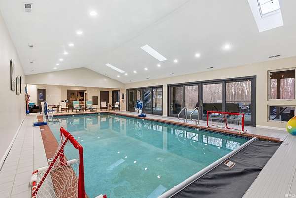 Start Showing Date: 4/10/2026 Start Showing date Friday April 10th! Tucked away among mature trees on 9.61 acres with a private pond, this updated contemporary ranch offers privacy & resort-style living just minutes from town. The spacious 7,220 sq. ft. layout includes 5 bedrooms, 5 bathrooms, a main-floor primary suite with spa-inspired bath & walk-in shower & an office/den with built-in bookshelves. Outdoor living is exceptional with a 2,000+ sq. ft. multi-level deck, built-in fire pit & serene wooded views. The finished walkout lower level features a full-size indoor pool with electric retractable cover, recreation space, game room, pool table area and direct access to the lower deck & yard. Additional amenities include a 3-car garage, outbuilding & abundant entertaining space. This is the family home everyone wants to come home to & where memories will last a lifetime!Note: Property taxes currently reflect no homestead exemption.