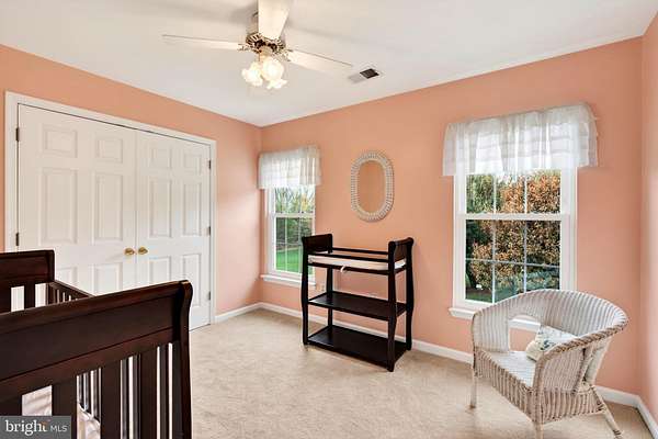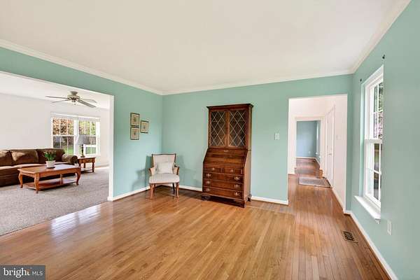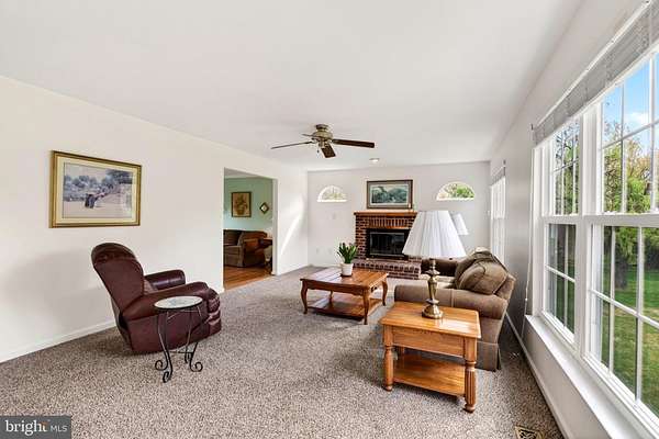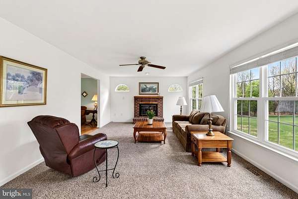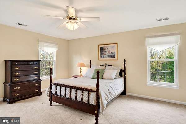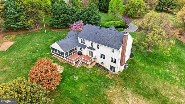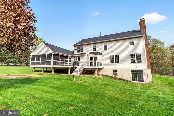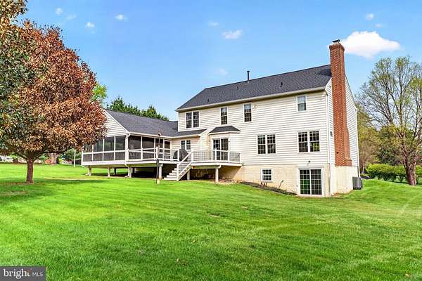 Rarely available Carriage Mill Farms colonial that has been meticulously maintained by the original owners. This 1.5 acre lot is the best in the neighborhood buffered on three sides by 27 acres of open space. A two-story foyer greets you as you enter the main level which includes a living room, formal dining room, half bath, laundry closet, family room with wood burning fireplace, and a kitchen updated with granite counters and new flooring. The second level features two full baths and four spacious bedrooms. The partially finished lower level has a full, bath ample storage, and a family room walking out to the rear yard. Enjoy the views of the yard from the composite deck and screened in porch. Many recent updates including new roof and downspouts (2019), 2nd floor heat pump (2020), windows (2021), front door (2023), driveway (2024), and more. Too much to list here, shows well.