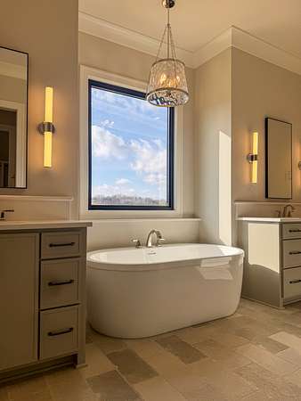Built by Tim Tomlinson Homes, it boasts 5 bedrooms, 5.5 bathrooms, and exquisite custom details throughout. Enjoy privacy while still being just a short drive to Nashville via easy interstate access. Inside, you'll find elegant custom cabinetry, a freestanding gas range, intricate trim work, curated lighting, white oak hardwood floors, screened porches and more features that make this estate truly special.