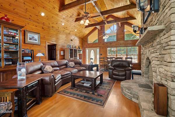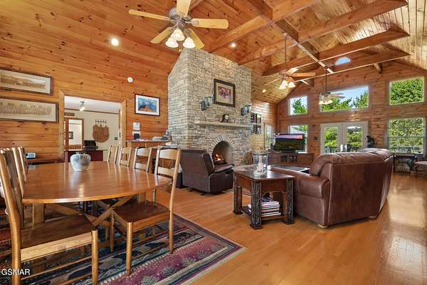 OWN YOUR OWN EQUESTRIAN ESTATE IN SEVIERVILLE, TN WITH ROOM TO EXPAND! 3BR WITH TWO BONUS ROOMS SHOWPLACE SITUATE IN THE MIDDLE OF 8 ACRES OF GENTLY ROLLING LAND WITH PASTURE AND OPEN FIELDS WITH HORSE STALL BARN AND SHED- PERFECT FOR MANY USES! TWO CAR GARAGE ON THE MAIN LEVEL WITH TWO CAR GARAGE ON THE LOWER LEVEL, GREAT ROOM/GAMEROOM, TWO KITCHENS, AND AN IN-LAW QUARTERS WITH ITS OWN ENTRANCE! THIS LUXURY HOME FEATURES SOARING VAULTED CEILINGS, HARDWOOD FLOORS AND TILE, MASSIVE STONE FIREPLACE, WALLS OF WINDOWS, FENCED YARD, COVERED PATIOS, EXPANSIVE DECKS, TWO LAUNDRY ROOMS, EXTRA STORAGE, AND A BLEND OF RUSTIC CHARM WITH CONTEMPORARY FINISHES. This home was custom built with quality and designed for comfort including spacious interiors, inviting outdoor living areas, and the privacy of mostly open partially treed land with mature landscaping all while remaining close to town. Perfect to add a hot tub or even in ground pool and expand the outdoor entertainment areas! The possibilities are endless! The heart of the home is the living room with soaring cathedral ceilings, a striking stone fireplace, and walls of windows that fill the space with natural light. The kitchen provides abundant cabinetry, granite countertops, built in oven with microwave, gas cooktop generous counter space, and modern white appliances. You will enjoy the dining area off the kitchen or the formal dining area/office that is on the other side of the kitchen area. The primary suite serves as a private retreat with stone accented gas fireplace with its own en-suite bath with a tiled shower with dual shower heads, a double vanity, a jet tub for relaxing, and a walk-in closet. The additional bedrooms are well-sized to accommodate family, guests, or office space. Access to the expansive deck areas from the Master bedroom, living room, and the lower-level great room. Split bedroom floorplan and oversized rooms throughout the home add comfort and versatility, while the flexible floor plan includes options for a media, game, or bonus room. As you step down to the lower level you will find a second fully equipped kitchen with an additional bedroom and bonus room with its own living room/entertaining area with woodburning stove, full bathroom, laundry room, and a two-car garage with storage. Again, this area would work well as an in-law quarters. Outdoor living is a highlight, featuring covered patios and expansive decks ideal for relaxing or entertaining year-round. The property is fully fenced, providing both privacy and security, and offers extra storage options for added convenience. A home alarm system further ensures peace of mind. Plenty of parking and a long private driveway lined with mature maple trees create a private and inviting entrance and lead to the upper or lower level garages. Plenty of room to expand! This property combines timeless craftsmanship, generous living space, and desirable amenities with a location near shopping, dining, and Smoky Mountain attractions. Also, you're located only a short drive to Knoxville or Sevierville. **Many recent updates have been made- ask agent for a list of all improvements! Check out the 3D tour and video!