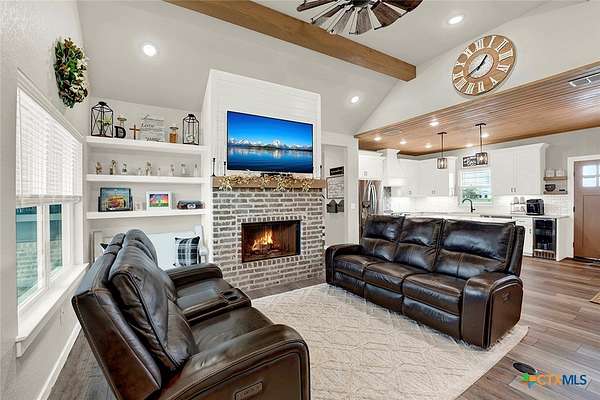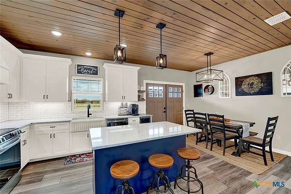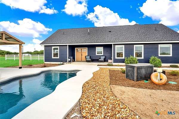 Welcome to this gorgeous Craftsman home! This stunning home perfectly blends farmhouse charm with modern amenities, featuring 4 Bedrooms, 3 Bathrooms, 2 Car Garage, Inground Pool, on 15 acres of land. As you approach, you are greeted by a welcoming front porch adorned with beautiful woodwork, inviting you to relax in the rocking chair and enjoy the peaceful surrounding. Upon entering the home, you're immediately refreshed by the open concept layout with a cozy fireplace, clean fresh paint pallet throughout, and beautiful kitchen! Retreat to the master suite with a spa like ensuite bathroom featuring double vanities, soaking tub and separate shower; with 3 additional bedrooms and 2 full bathrooms for family or guests. Head out back to begin planning your next gathering with an inviting back porch, inground pool, and firepit seating area! True country setting & a must see in La Vernia ISD!