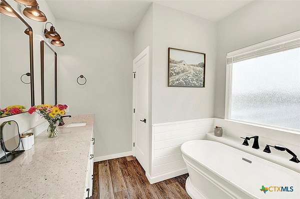 - Breakfast Bar, Built In Features, Ceiling Fans, Custom Cabinets, Double Vanity, Garden Tub Roman Tub, Kitchen Dining Combo, Kitchen Family Room Combo, Kitchen Island, Living Dining Room, Main Level Primary, Pantry, Primary Downstairs, Soaking Tub, Solid Surface Counters, Walk In Closets, Walk In Pantry