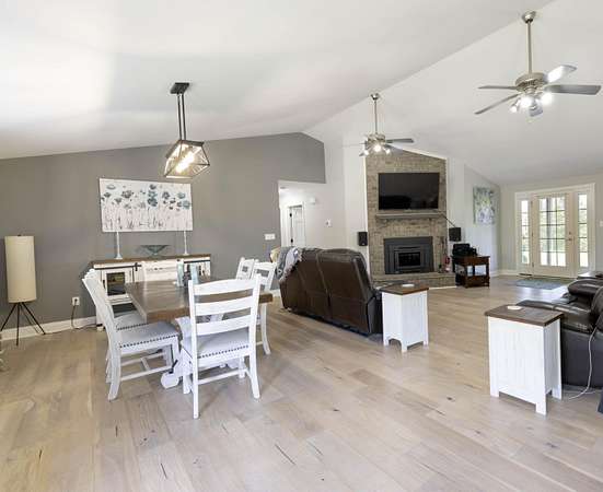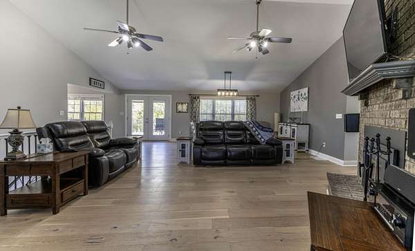 Enjoy Country Living with Modern Convenience! Experience the best of both worlds-peaceful country living with quick access to shopping, dining, and the interstate. This unique property offers three separate homes: a spacious main house, a charming cabin (with Hardie board siding designed to look like a log cabin), and a mobile home. The property also features a large three-car detached garage/workshop, ideal for storage, hobbies, or projects. The main house has five bedrooms, four full bathrooms, two living rooms, two laundry room options and much more! Inside you'll find thoughtful upgrades throughout-Large gourmet kitchen with quartz countertops, new appliances including an under-the-counter microwave, a long island, a ventless hood, a mosaic tiled backsplash, a trough sink that has a removable single sink and more! A large pantry that also has a washer/dryer hookup and is located off the side of the kitchen. The main house has two primary suites, one on each floor. The basement primary suite has heated floors, a large walk-in shower and a jetted tub. Step outside to a steel-framed deck with composite decking, offering durability, low maintenance and timeless style. The farm has a beautiful four-plank black fence following the driveway up the hill. The cabin has one bedroom and one bath with almost 1,000 sq ft of living space. It recently received numerous updates, including new LVP flooring, a bathroom vanity, blinds, paint, new storm doors on the front and back, new steps, new concrete parking pad with a walkway and more! The mobile home has three bedrooms, two bathrooms and is located on an acre of land. It recently got new LVP flooring in the kitchen, dining room, hallway and hall bath, new kitchen cabinets with countertops, refrigerator and fresh interior pain. This versatile property truly has it all-it is a must-see today!