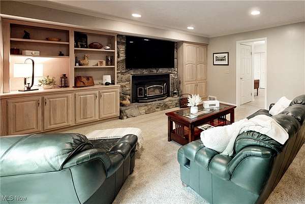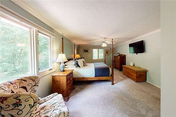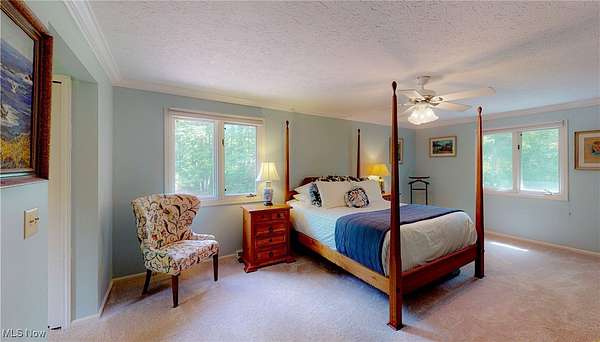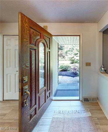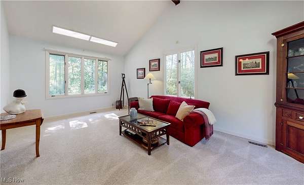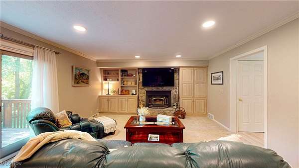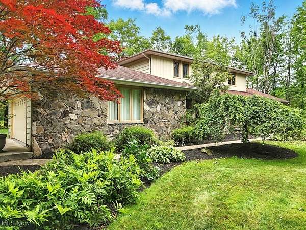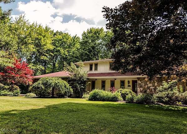Tucked into the trees on a quiet, no-outlet street this lovingly maintained colonial is the kind of property that whispers "home" the moment you arrive. With 4.3 acres of open lawn, mature woods, and winding private trails, this home delivers space to breathe, room to roam, and endless potential for the life you've been dreaming about. Inside, the layout is generous and functional-designed for everyday comfort and easy connection. A large foyer welcomes you in, leading to an enormous living room filled with natural light. The kitchen is spacious and central, with easy access to the back deck and open sightlines into the cozy family room featuring handsome built ins and a wood stove insert that adds both charm and serious function. Picture quiet snow days with mugs of cocoa, the steady crackle of the fire warming the room-and the rest of the house too, thanks to its impressive heating power! Whether it's everyday life or big gatherings, this space is made for togetherness and comfort.. A first-floor laundry and powder room add convenience, while the attached 2-car garage and the full unfinished basement provide plenty of space to expand or store all of lifes extras. Upstairs, you'll find four bedrooms, including a large primary suite with a private full bath, and a roomy hall bath for the remaining 3 bedrooms. This home offers the rare opportunity to move right in and personalize at your own pace. Step outside and it's easy to imagine morning coffee on the deck, afternoon hikes in your own backyard woods, or twilight bonfires under the stars. Notable improvements: furnace and AC 3years old, 50 year architectural shingle installed 10 years ago, HWT 5 years, chimney crown and tuck pointing on chimney 2025, and newer Kinetico system. Whether you're craving privacy, a connection to nature, or simply a quiet place to call home, you have found all three here! Just 6 miles from downtown Chagrin Falls and under 10 minutes to I-271- you are tucked away, but never too far.
