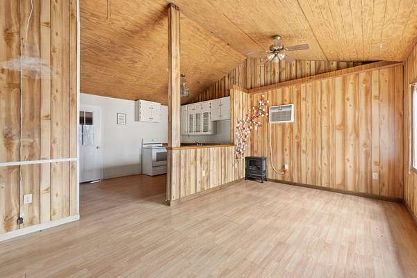 - Beamed Ceilings, Cathedral Ceiling(s), Ceiling Fan(s), Laminate Counters, Open Floorplan, Plumbed