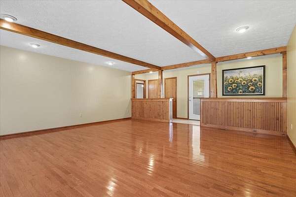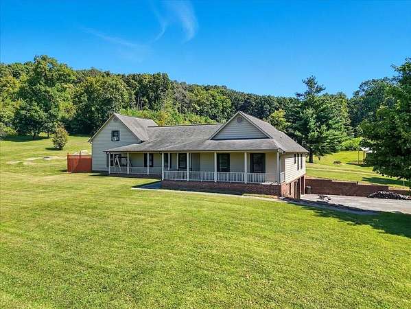 Home has gone under contract with a 48 hour first right of refusal. Buyer must sale his home to be able to purchase this one. Excellent home on over 8 acres. Immaculate 3 bedroom, 2.5 bath home with over 2000 sq feet of living space. Spacious rooms throughout with gleaming hardwood floors and tile. New quartz countertops and backsplash in kitchen and large utility room. All kitchen appliances convey. Bonus room over the garage that can be used for an additional bedroom, office, storage or whatever you desire. Primary suite includes roomy walk in closet and bath with step in shower, vanity and soaker tub. Additional bath in hall for other bedrooms. Wood burning fireplace in cozy living room. 2 car main level garage. Continue downstairs to the full, unfinished basement with additional parking and storage area. Wood burning stove available. 2 hot water heaters. One for kitchen, half bath and laundry and other for 2 other baths. Enjoy rocking or swinging on the covered front porch. Detached metal building in back yard for workshop, storage and parking for RV with electric hookup. Level to gently rolling acreage with beautiful views. Conveniently located to schools, shopping and medical. E