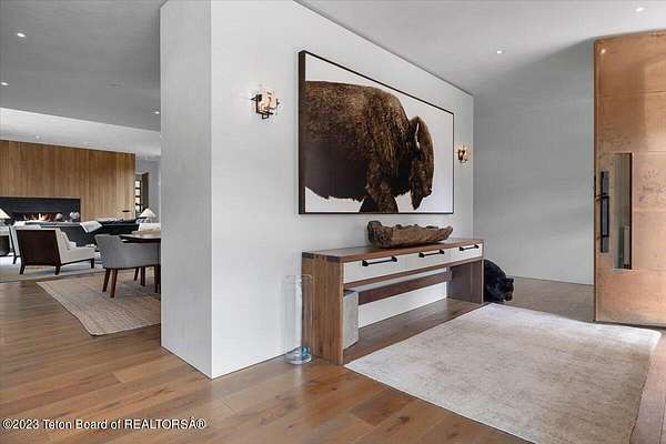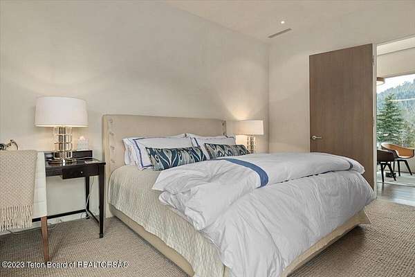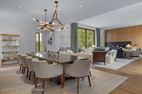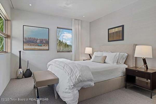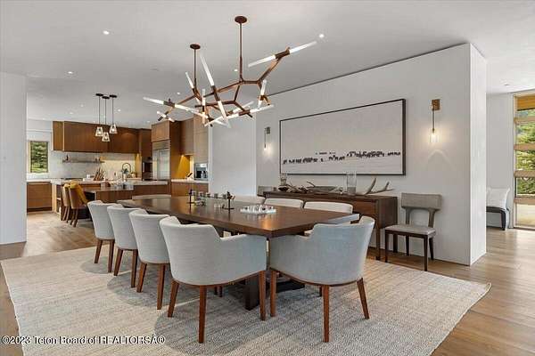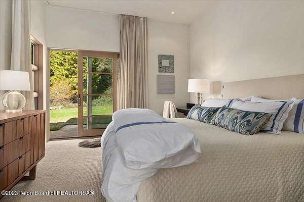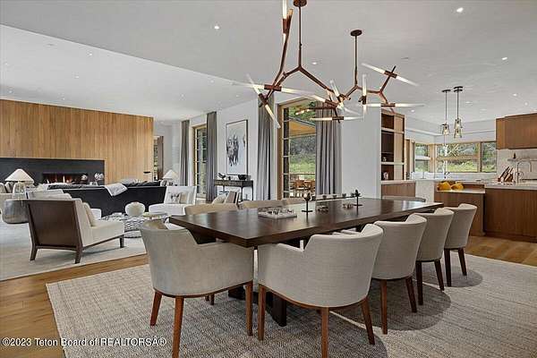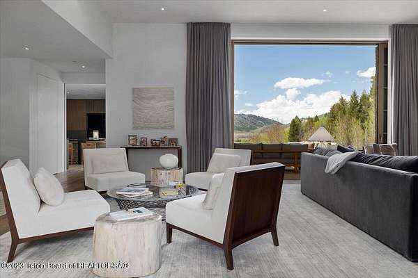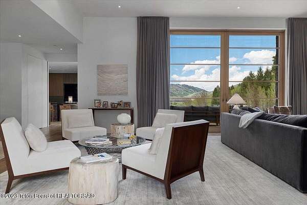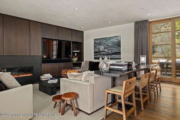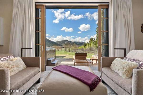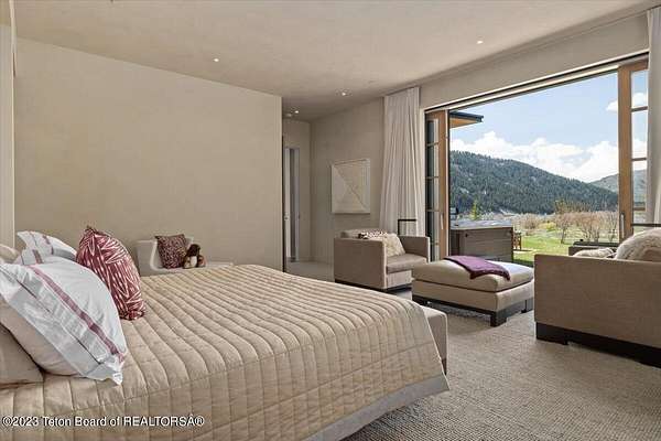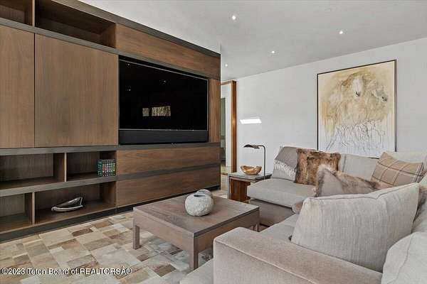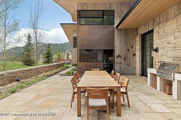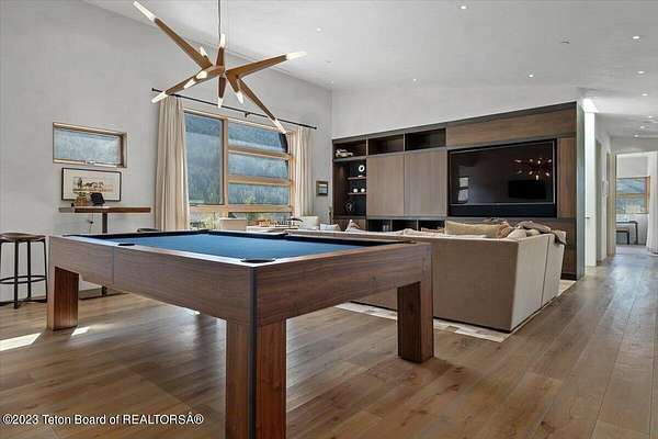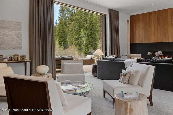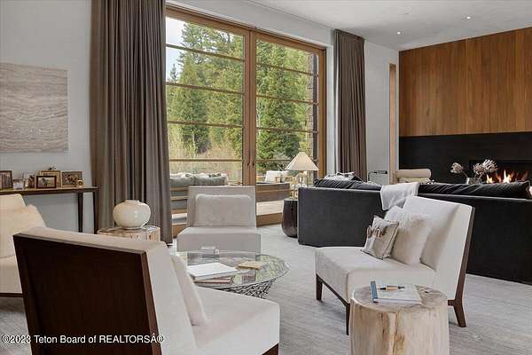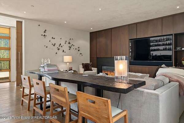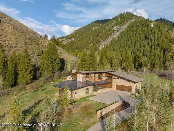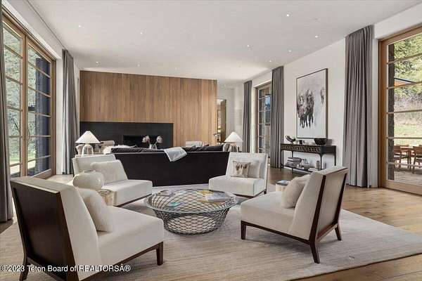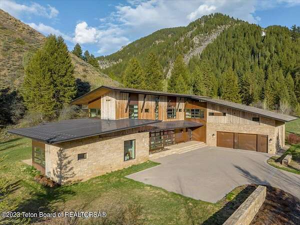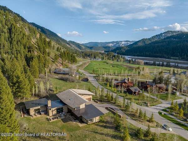 Offered fully turnkey, this stunning mountain contemporary home at the Snake River Sporting Club epitomizes luxury living. Recognized as Mountain Living Magazine's 2018 Home of the Year, the residence is set on 1.14 acres, blending modern elegance with rustic charm. The exterior showcases a striking mix of barn wood, limestone, and copper, creating a sophisticated yet inviting aesthetic. Inside, every detail has been meticulously curated, with custom fixtures and finishes chosen to complement the home's refined design. Crafted by Teton Heritage Builders in collaboration with WRJ Design, this residence delivers an unparalleled ownership experience in Jackson Hole. Notable features include Crystallo Quartzite countertops, French Oak 8'' hardwood floors, motorized walnut cabinetry, and custom crystal light fixtures. The home is fully integrated with a smart system that controls lighting, blinds, audio, and a video surveillance system throughout. The main fireplace has been upgraded for seamless conversion between wood and gas-burning use. Additional enhancements include a children's bunkroom/playroom and WiFi 6 System, both added in 2022. In 2023, a 9'5" x 5'4" wine room and an expansive 18'4" x 16'2" storage area were integrated into the lower level. It also has a Starlink system for backup to the fiber optic cable. This home is being sold completely turnkey with WRJ furnishings, and a full inventory list is available. Everything on-site is included, offering a truly move-in-ready experience. Vacant Lot #13, 1.59 acres is available for additional purchase.