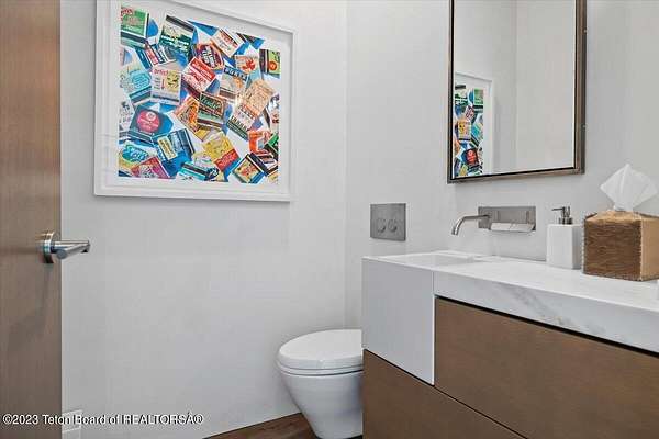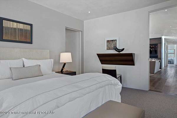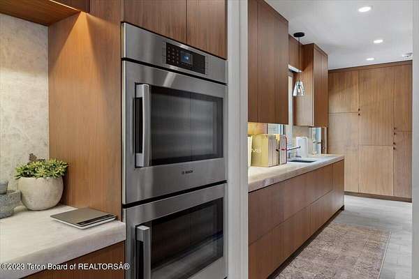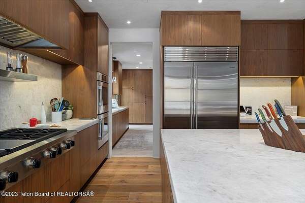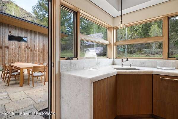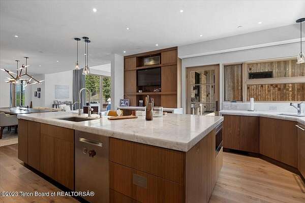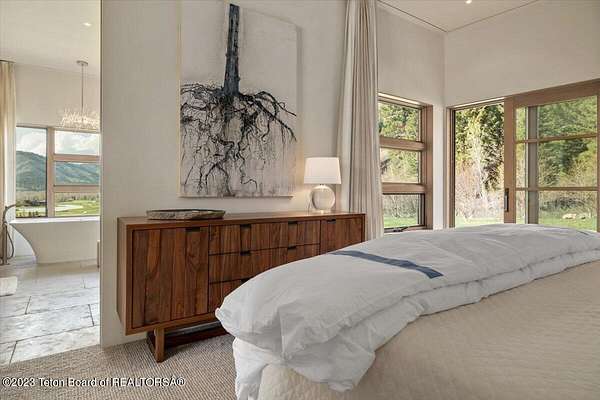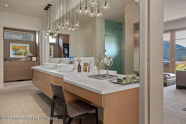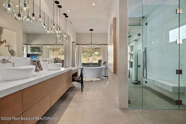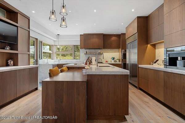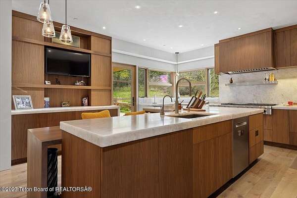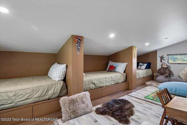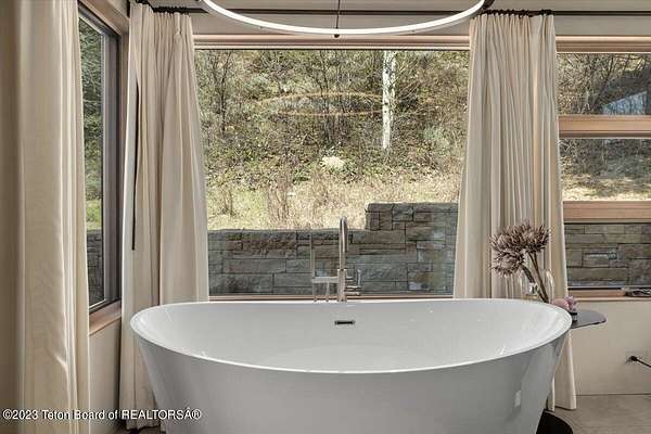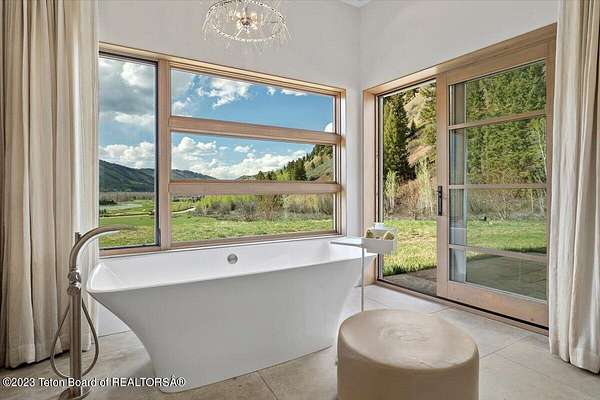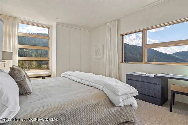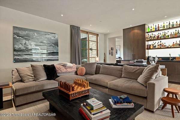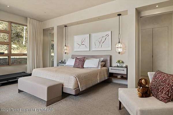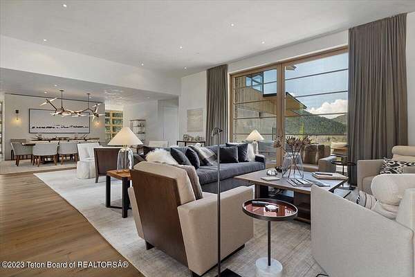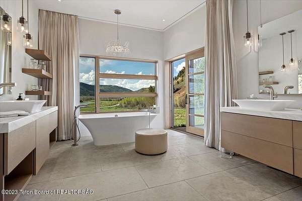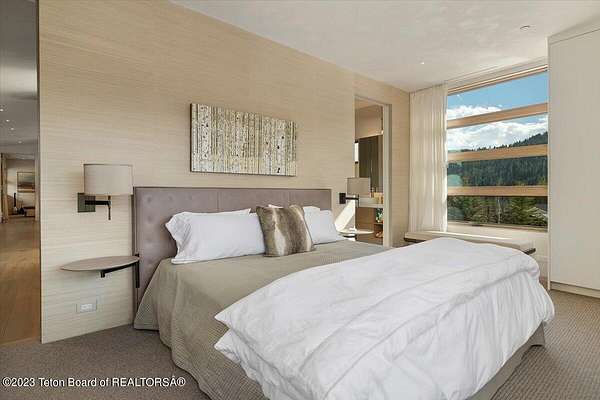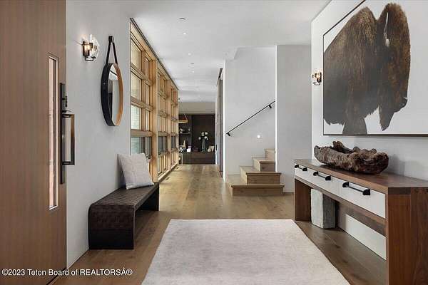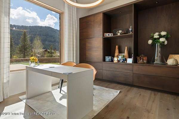 Offered fully turnkey, this stunning mountain contemporary home at the Snake River Sporting Club epitomizes luxury living. Recognized as Mountain Living Magazine's 2018 Home of the Year, the residence is set on 1.14 acres, blending modern elegance with rustic charm. The exterior showcases a striking mix of barn wood, limestone, and copper, creating a sophisticated yet inviting aesthetic. Inside, every detail has been meticulously curated, with custom fixtures and finishes chosen to complement the home's refined design. Crafted by Teton Heritage Builders in collaboration with WRJ Design, this residence delivers an unparalleled ownership experience in Jackson Hole. Notable features include Crystallo Quartzite countertops, French Oak 8'' hardwood floors, motorized walnut cabinetry, and custom crystal light fixtures. The home is fully integrated with a smart system that controls lighting, blinds, audio, and a video surveillance system throughout. The main fireplace has been upgraded for seamless conversion between wood and gas-burning use. Additional enhancements include a children's bunkroom/playroom and WiFi 6 System, both added in 2022. In 2023, a 9'5" x 5'4" wine room and an expansive 18'4" x 16'2" storage area were integrated into the lower level. It also has a Starlink system for backup to the fiber optic cable. This home is being sold completely turnkey with WRJ furnishings, and a full inventory list is available. Everything on-site is included, offering a truly move-in-ready experience. Vacant Lot #13, 1.59 acres is available for additional purchase.