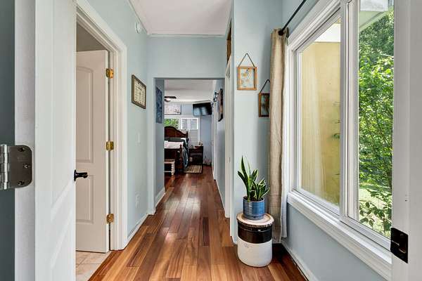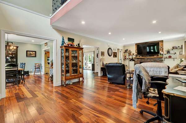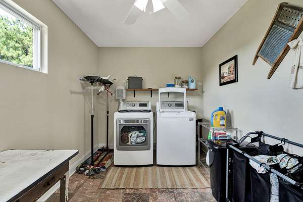 The layout includes two primary suite options; one on the main level and another upstairs, perfect for multi-generational living or guest accommodations. Upstairs also features a cozy living room space, four bedrooms, 2 full baths, and a second-floor laundry room.