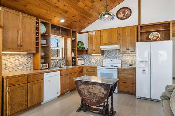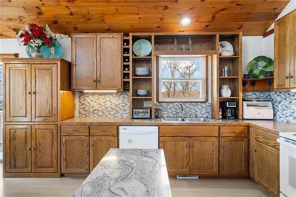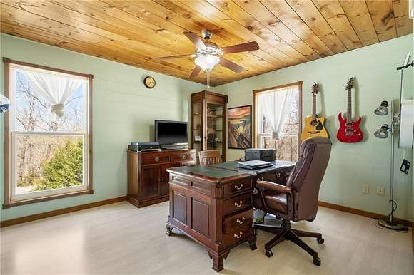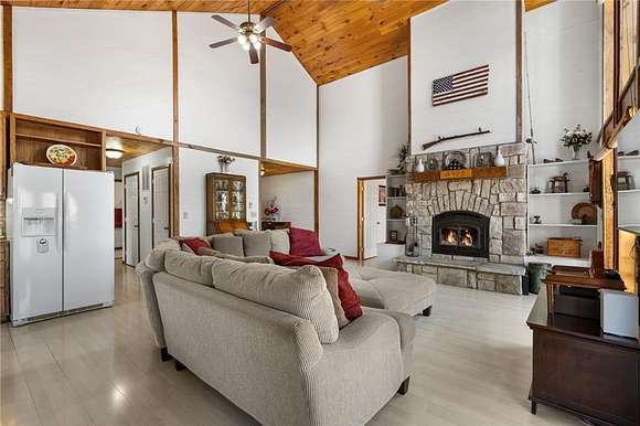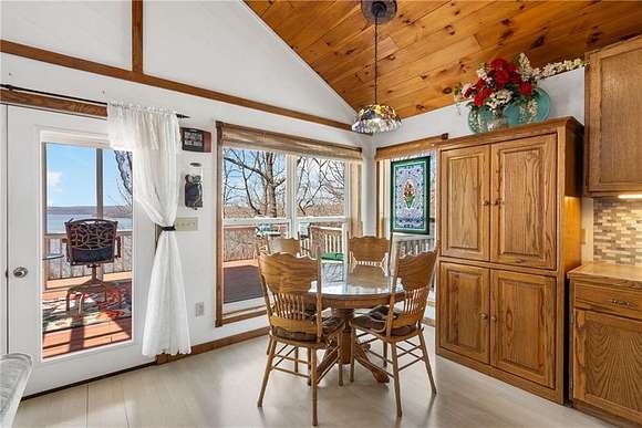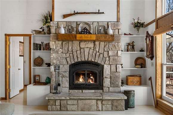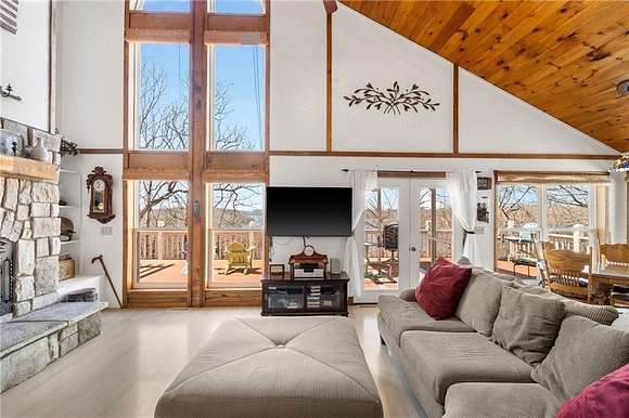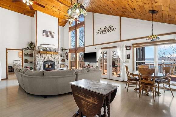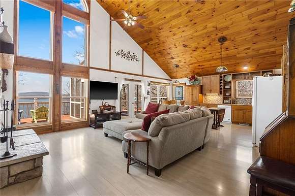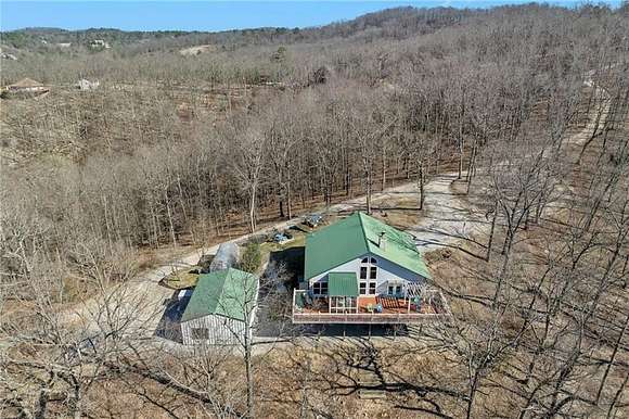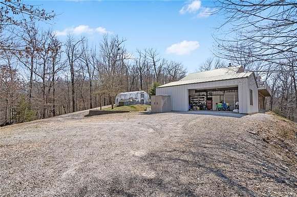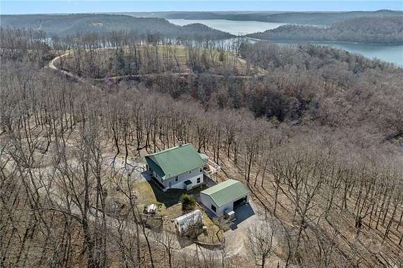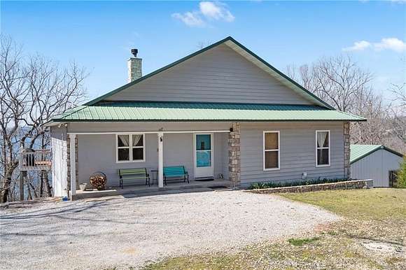 Lakefront property w/ private cove & boat dock on 14+ acres on Beaver Lake. Welcome to lake life at its best, offering equal parts fun & relaxation + convenience & privacy; a combo that makes this one a rare find! Enjoy stunning views of Point 5, combined with the ease & convenience of having your own 2-slip boat dock. Built in 2004, the 3,240 sq. ft., 3-bed, 3-bath home offers spacious, open-concept living w/ a finished basement, perfect for entertaining or guests accommodations, featuring 10" reinforced concrete walls & 10' ceilings. An expansive deck provides the perfect setting for gorgeous sunrises & sunsets over the lake, while the front patio provides a peaceful spot to simply enjoy being surrounded by nature. Property includes 2 metal buildings (30x40 and 24x33 - one w/drive thru garage doors) for boats, RVs, or workshops + a 10x20 greenhouse for year-round gardening. Durable hardy board siding ensures longevity. Attic area prep'd & ready to be converted into a loft if desired.