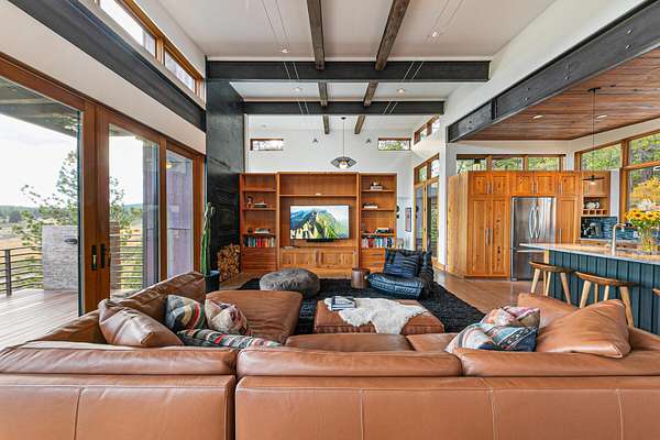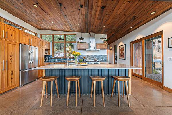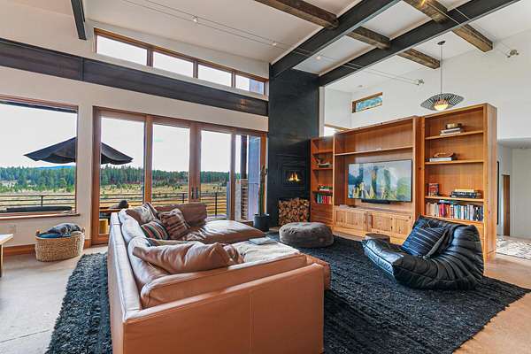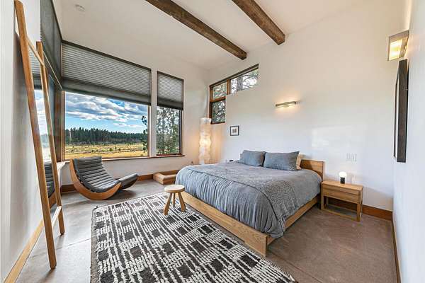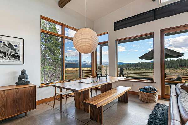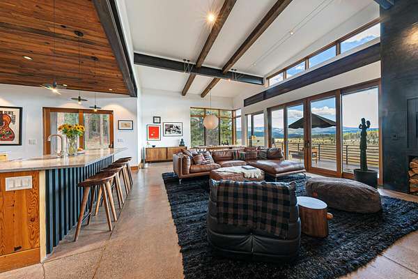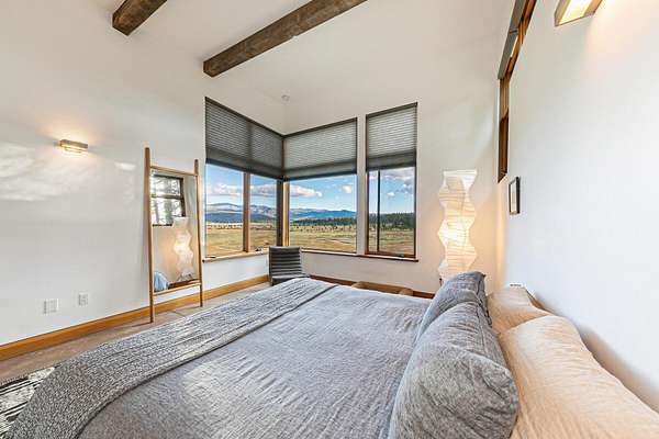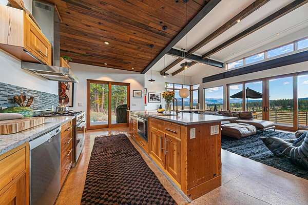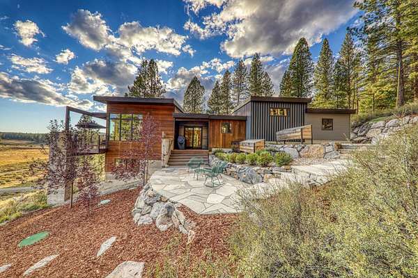 Discover an extraordinary mountain retreat in the heart of Russell Valley, offering unrivaled privacy and breathtaking views. Located just 10 miles from Truckee, this one-of-a-kind home features panoramic vistas of the Carson Range and protected National Forest land that will never be developed. Thoughtfully positioned on 5 acres, this award-winning residence seamlessly blends modern design with natural beauty. With 3 bedrooms and 2.5 bathrooms, the home delivers comfortable, light-filled living spaces that shine year-round. The focal point of the property is the expansive great room, featuring floor-to-ceiling windows, a well-appointed kitchen, and seamless access to the back deck--ideal for entertaining or relaxing while soaking in the views. A versatile flex office space adds extra functionality for work, creative pursuits, or a cozy sleeping space for little ones. The oversized two-car garage offers generous storage and convenience, complemented by a long, flat driveway with plenty of extra parking for guests and Tahoe toys. Outside, take a dip in the hot tub, unwind on the terraced patio, or head out on a bike to the nearby reservoirs. From sunrise to sunset, this property presents the unique chance to unplug and escape, yet remain close to all that Tahoe has to offer.