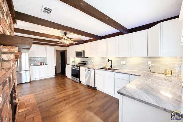 Rarely does a property like this come along. This versatile 20-acre farm offers the perfect blend of rural living and modern convenience, featuring a beautifully updated brick home and multiple high-quality metal outbuildings designed for low maintenance and everyday functionality. Conveniently located which simplifies traveling to Leavenworth, Lawrence or Topeka. The exterior is thoughtfully designed for livestock, horses, or hobby farming, with multiple fenced areas, metal lean-tos within fenced sections, and five conveniently located water spigots throughout the property. Outbuildings include a 60x25 building with water and a half bath, a 25x40 horse barn with five stalls, lean-to, and fencing, plus an additional 45x35 building-all equipped with electricity. Besides being located on a paved road, a major highlight of this property is the solar panel system, which results in very minimal annual utility costs, offering exceptional long-term savings and energy efficiency. Enjoy peace of mind knowing this home is both cost-effective and environmentally friendly. Additional features include a concrete driveway, sidewalks, rock retaining walls, a covered front porch, and a patio ideal for relaxing or entertaining outdoors. With numerous updates already completed, this property is truly move-in ready and set up for immediate enjoyment. Opportunities like this don't come often-contact me today for a full list of updates and to schedule your private showing!