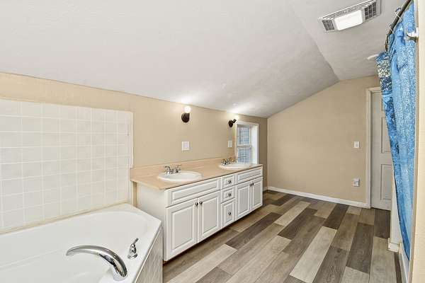 - Laminate Counters, Pantry, Raised or Tiered Entry, Solid Surface Counters, Walk-In Shower, Wash/Dry Connection