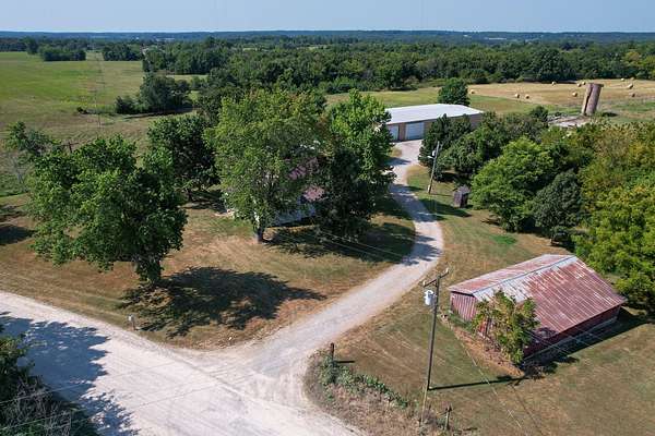 This breathtaking 156-acre farm offers a rare combination of beauty, versatility, and modern updates. Two of the seven ponds are spring-fed and stocked, perfect for fishing or watering livestock. More than 55% of the land is open pasture--previously used for cattle and currently hayed--with horse facilities already in place. The remainder offers prime hunting grounds, scenic bluff views, and even the potential for a cave exploration.The charming 1906 two-story farmhouse has undergone a near-complete remodel over the last 7 years, including crawlspace remediation with moisture barrier, luxury vinyl plank flooring, sheetrock, updated electrical, new windows, roof, appliances, and efficient mini-splits. Enjoy the separate laundry/mud room with propane wall heater off the kitchen--ideal for farm living.A massive 60'x120' red-iron steel building provides 3, 12' high doors and separate workshop. The workshop has a 14' wide door, concrete floors, 220, and an apartment at the back, with bathroom and loft. The other side has 18' wide doors, on front and side, perfect to store toys and equipment, or add your own horse stalls! Additional improvements include a livestock barn/loafing shed with tack area, enclosed stalls for smaller livestock and covered area to an open run, ~200'x100' arena with permanent corral, old grain silo, 4-bay carport, well house with storage, and an outhouse!Whether you're seeking a working farm, recreational retreat, or a combination of both, this property delivers the best of the Ozarks--peaceful countryside, modern updates, and endless possibilities.
