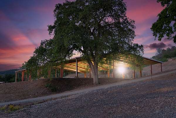 Silver Ridge Stables sits on 277 acres of land, much of it on the top of Table Mountain, currently accessed by foot and horse only. It's the last property on the street, offering privacy and serenity that's hard to find. The lower portion of the ranch includes a lighted and covered arena, with views overlooking the northern Sacramento Valley, two wooden barns, which include an office area, hay storage, tack room and 15 individual tack lockers. There are 9 horse runs with covers that come off the two barns and 8 additional paddocks with run in shelters and individual water troughs. The ranch also includes a 3-acre fenced pasture and around 8 acres of old olive orchard, also fenced. Trails are cut throughout the property and orchard and you have direct access to enjoy several thousand unfenced acres on Table Mountain.