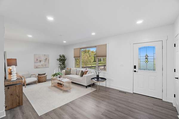 This updated home on 2 acres features major upgrades within the last 8 years: HVAC, water heater, electric panel, roof and windows. The kitchen offers new wood cabinets, quartz countertops & newer stainless appliances: renovated all tile bathrooms & new floors! The open layout connects the dining area to an open living room with great natural light. The finished lower level includes an extra bedroom, full bath & spacious family/rec room, making for a great MIL or teenager suite. There's also a modern mud/laundry room & off-street parking for at least a dozen cars. The oversized garage fits two small cars, in tandem. There is a gravel road that opens up to a flat rear acre & gravel pad ready for your future pole barn (owner willing to construct & roll cost into price). The outdoor living includes front/rear decks plus a concrete patio overlooking tree-lined views & faces west for great sunsets. A one-year home warranty is included. Assumable mortgage available at 4.25 percent, as well as creative financing, ask for more details. As rates fall, prices will rise so don't sleep on this great opportunity!