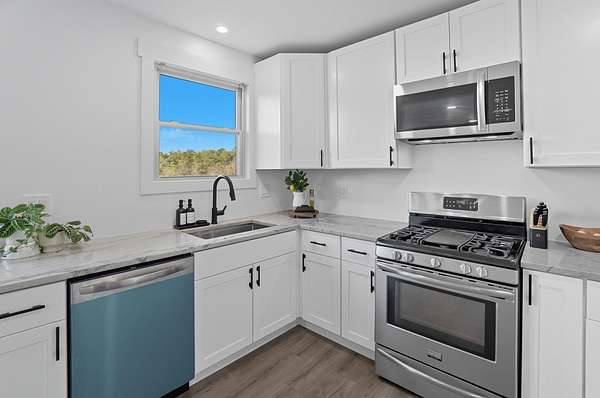- Dishwasher, Gas Range, Microwave, Refrigerator, Stainless Steel Appliance(s)
