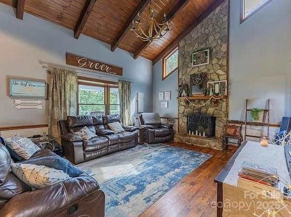 Charming Mountain Retreat with Stone Accents and Beautiful View of Hibriten Mountain This lovingly maintained home is nestled against a wooded backdrop, offering privacy, and stunning natural surroundings. You will be captivated by the timeless charm of the stonework, the inviting porch, and the serene setting among mature trees. Spacious design with an open main level, stone fireplace, and abundant natural light. Private wooded lot providing both seclusion and scenic beauty. Stone and siding exterior blending classic mountain style with modern comfort. The porch is perfect for relaxing, entertaining, or enjoying your morning coffee with a view. Two-car garage and ample driveway space. Set back from the road, this home offers a peaceful escape while remaining conveniently located . This property provides the perfect combination of comfort, charm, and natural beauty. Oversized primary bedroom and walk in closet . Kitchen remodeled in 2022 with quartz countertops, new cabinet doors, and light fixtures. Come see today ! No record of septic permit found with Caldwell County.