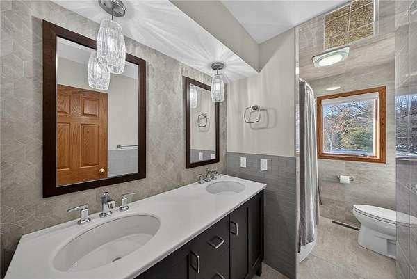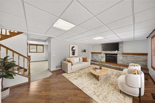 Set on just under three acres and surrounded by mature trees, this beautiful property offers a country feel while remaining conveniently close to town. The expansive lot provides space, privacy, and a peaceful setting with room to enjoy every season. The main level welcomes you with a bright and functional layout designed for everyday living and entertaining. The kitchen features abundant cabinet space, stainless steel appliances, quartz countertops, and under cabinet lighting, along with easy access to the deck and patio areas. A main floor laundry room adds everyday convenience. Living and dining spaces are warm and cozy and filled with natural light. All three bedrooms are located on the upper level, including a spacious primary suite with an updated private bath and a large walk-in closet. The lower level provides exceptional flexibility with multiple finished spaces. A large family room with a beautiful fireplace creates a cozy gathering area and includes a walkout to the patio. Additional rooms offer a variety of uses and may serve as a den, office, hobby space, recreation area, workout room, or workshop, providing flexibility to customize as needed. There is also a partially finished three quarter bath with plumbing in place for a shower. Outdoor living is equally impressive with a spacious double tiered deck, a large patio area, and plenty of green space to enjoy the surrounding trees and open views. A convenient wide, curved asphalt driveway with a paver apron at the garage extends to the shed and wraps around to the back of the property, offering excellent access and parking. The garage also has a high quality concrete floor coating along with a screened pull down door on the double garage door. The storage shed and an additional detached garage provide extra room for equipment, storage, or workspace. This property offers space to spread out, both inside and out, in a setting that balances privacy, functionality, and convenience.