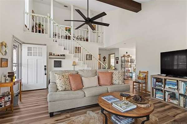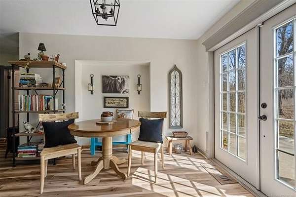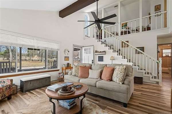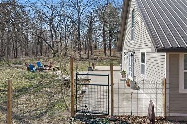 Welcome to peaceful country living at 1477 Sandy Creek Rd. This charming two story home offers 3 bedrooms, 2 full bathrooms, and sits on 5 beautiful wooded acres(mol), providing the perfect escape from the hustle and bustle of city life while still being a short drive from town. The current owners have completed numerous updates including new double-pane windows, HVAC unit, hot water heater, water softener, interior lighting, flooring, paint, doors, toilets, and bathroom vanities. Outside improvements include a new backyard fence with three gates, storm cellar, well house, additional outdoor water spigot, and nature trails throughout the property. As you arrive, you're welcomed by a covered front porch complete with a porch swing - the perfect place to relax and enjoy the peaceful surroundings. Step inside to the living room where a large picture window allows you to admire birds, deer, and wild turkeys while feeling connected to nature in the comfort of your home. The kitchen features custom cabinetry with abundant storage, granite countertops, and stainless steel appliances. Downstairs you'll find two bedrooms with generous closet space and a full bathroom conveniently located between them. Upstairs offers a cozy sitting area, a spacious full bathroom, and the third bedroom, creating a flexible space for guests or family. Large windows throughout the home flood the interior with natural light, making the home feel open and inviting. The fenced backyard provides a great space for kids and pets, while the oversized concrete patio is perfect for entertaining or relaxing. A backyard fire pit creates the ideal setting for enjoying cool evenings under the stars. This property offers the chance to reconnect with nature, with walking trails created by the sellers and an abundance of firewood available. This unique property is completely move-in ready and waiting for its next owners to enjoy both the home and the peaceful land it sits on.