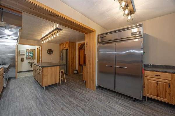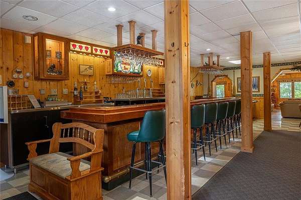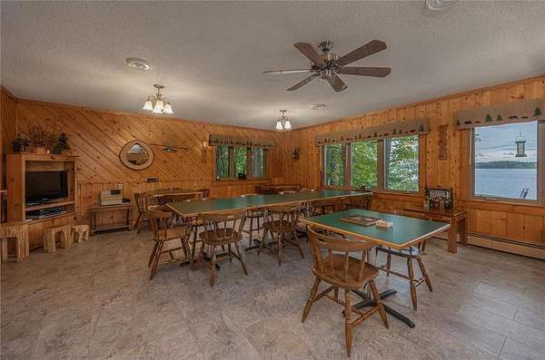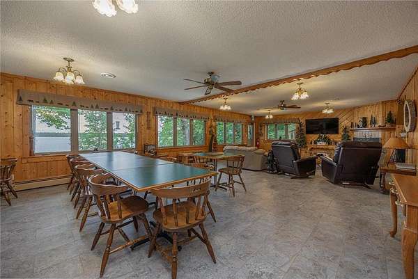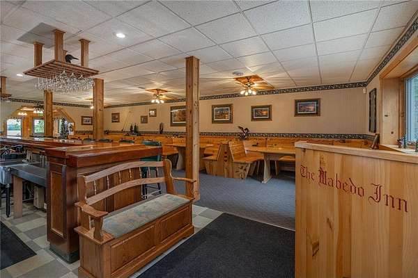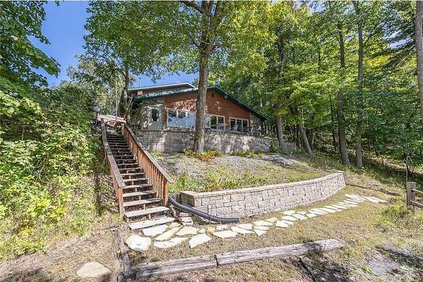 Once a beloved lodge, this exceptional Wabedo Lake property is now being offered as a private lakeside residence, blending historic character with modern luxury. Perfect for entertaining on a grand scale or enjoying peaceful family gatherings, it offers expansive parking, a 3-car garage, and beautifully landscaped grounds. The level yard is ideal for lawn games and outdoor activities, while a fire pit area with sweeping lake views creates an inviting place to unwind. From your own private stairway, walk down to the water's edge, where you'll enjoy gorgeous views of a nearby island. Inside, the main level was designed for hosting unforgettable gatherings. A handcrafted bar, created by the former owner of the historic Wabedo Inn, serves as the centerpiece of a spacious entertainment area with plenty of room for game tables and conversation. The chef's kitchen is a showstopper with custom hickory cabinetry, stainless-steel refrigerator, a massive Wolf range with hibachi grill, and a generous island for meal prep or casual dining. The lakeside great room features knotty pine finishes, banquet seating, and wall-to-wall windows that flood the space with natural light and offer stunning lake views, plus direct access to a patio overlooking the water. There are 2 1/2 baths on this level for convenience. Upstairs, you'll find five inviting bedrooms, including a private suite with its own entrance, a private 3/4 bath, and a convenient laundry area. The additional bedrooms share a stylish bathroom with a granite countertop. A kitchenette with peninsula seating makes hosting guests effortless, while ample storage throughout ensures functionality. Whether you dream of a family compound, an entertainer's paradise, or a lakeside sanctuary, this property delivers the best of all worlds. With its one-of-a-kind history, thoughtful updates, and extraordinary setting, this Wabedo Lake retreat is a true Northwoods treasure.