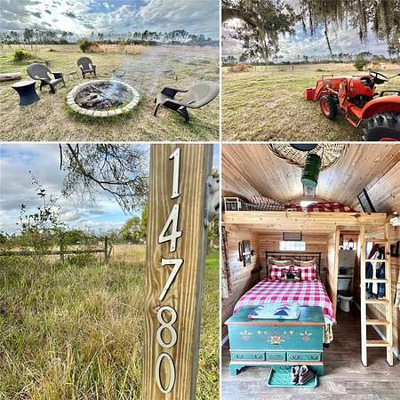 Welcome to Old Miakka! Settled by cattlemen in 1850, this Florida Prairie played a starring role in the Sunshine State's agricultural trade. Welcoming the railroad in 1915, Myakka City was officially established. These seven acres are an ode to a simpler way of life. The flat, dry prairie land is perfect for grazing cattle or goats, training horses or tending the specialty crop of elderberry. Surrounded by a flower farm, honey producers and wedding venues, this site is the perfect spot for you to write your own story, create your own adventure. A horseshoe shaped pond for fishing or watering your livestock and a berm for target practice. Cook dinner over an open fire or gather around the firepit for storytelling. There are a couple of small structures on the property. HIS shed is rustic with a cot and solar panels, the SHE-shed sleeps four with a cozy loft and a composting toilet. There is a new concrete slab to erect another structure. Small wooded patches provide shade or a place to hang your hammocks. This site has a deeded easement for access from Sugar Bowl Road. Just a thirty minute drive from downtown Sarasota and you'll feel like you are in another world!
