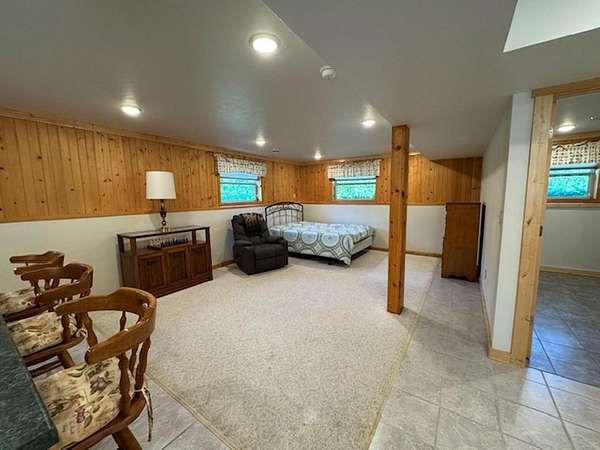 A piece of the Northwoods can be yours. Spacious tri-level home on 3.75 acres with a 32 x 40 steel shed bordering the Nicolet National Forest. Home features an open living room and kitchen with vaulted ceiling, beams, a kitchen island, and a wood fireplace. The primary bedroom has patio doors leading to a deck overlooking the woods. The huge second bedroom is ready to accommodate your children or visiting friends. The lower level has a family room, a second full kitchen with bar, a half bath, and a washer and dryer. Additional amenities include an office area, a breezeway, a den, an attached 14x24 garage with a heater, a hardwired generator, and central air. Home is located near many lakes for fishing or swimming. Access ATV and snowmobile trails from your backyard.