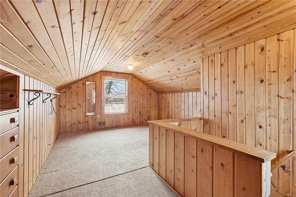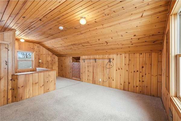 The residence was originally built in the 1930s and relocated to the property in 1982. An addition completed in 1998 added a main-floor bedroom, the living room, the mudroom, and the attached garage. The home reflects its era upstairs with the bedroom, closets, and attic. The main floor plan is great, with a large living room with a wood-burning fireplace. Main-floor features a mudroom, foyer, kitchen, and an office desk. The primary bedroom on the main floor features a huge walk-in closet and a full bathroom. Kitchen with views of the yard and beautiful sunrises off the deck. The finished lower level was previously used for dog training and grooming, which is why the flooring was not installed.