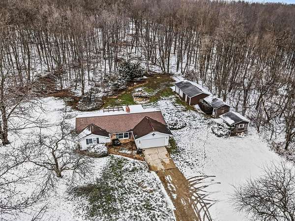 First time on the market, this is an amazing 2.3-acre property with a solid, 1392 sq. ft. ranch-style home and three additional buildings with multiple uses. The property is being sold ''as is'' and has great potential. The setting is ideal - near downtown Augusta, the Ft. Custer Recreation area and Kellogg Forest. The formal entryway leads to a spacious living room with hardwood floors, attractive, brick fireplace, wood beams at the ceiling, and door to the a deck with pergola where your view is wooded and peaceful. The kitchen has great cabinet and counter space, a good-sized dining area with inviting brick accent wall, wood ceiling with beams and door to a screened porch with backyard view. Imagine having coffee on the porch or entertaining guests this summer where you're sure to see wildlife. Nearby on the main level are a full bath, two-car garage access and stairs to the basement. Three bedrooms, a second full bath and plenty of storage throughout complete the main level. One of the bedrooms is now equipped as a laundry with washer and dryer, storage cabinets and shelves. This room could easily be converted back to a bedroom or office. The basement is expansive with another fireplace, workbench and canning shelves. Outside, each of the three extra buildings on the property have been used extensively over the years and include electric. Think about the many uses from workshop, garden shed, art studio, extra vehicle storage and more. This is a great property that you can make your own and enjoy for many years.