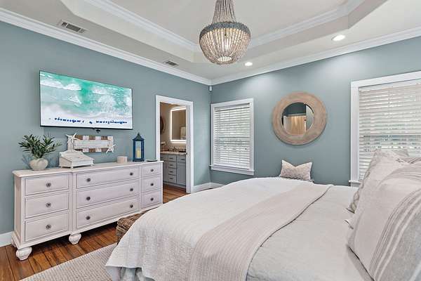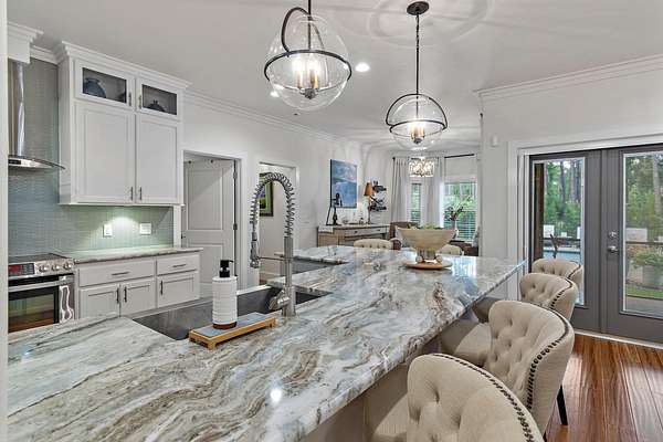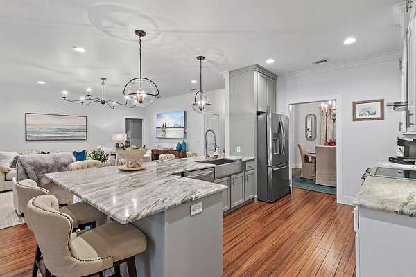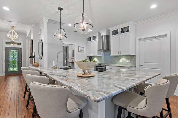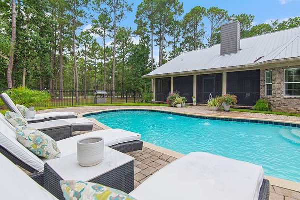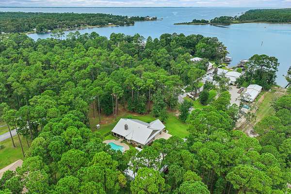 Your Beachside Bayou Escape Awaits! Embrace the coastal lifestyle in this beautiful 2-acre estate, perfectly positioned across from Lagrange Bayou and just a short drive to the sugar-white sands of 30A. With a main home and a full guest carriage house, this property offers space, style, and endless opportunities for relaxed living near the beach. The main home has 4 bedrooms, 2 baths, and an oversized 3-car garage. Inside, you'll find warm wood floors, crown molding, upgraded lighting and hardware, and a cozy fireplace for cool evenings. The kitchen shines with stainless steel appliances, solid surface counters, plenty of cabinetry, and a sunny breakfast nook overlooking the backyard. The spacious owner's suite includes a sitting area, large walk-in closet, double vanities, soaking tub, and separate tiled shower. Step outside to your private fenced-in pool with lush, upgraded landscapingan ideal spot for afternoon swims or evening gatherings. The carriage house sits above a 3-car garage with workshop space/RV parking and offers 2 bedrooms, 1 bath, a full kitchen, dining, and living area. It's the perfect retreat for guests, multi-generational living, or even rental potentialcomplete with a brand-new AC unit for peace of mind. With parking for 6+ cars, RV storage, and room to expand, this property blends comfort with functionality. Surrounded by bay views, boat launches, and just minutes from the beaches, airport, and restaurants, it's a one-of-a-kind gem designed for those who love a beachy, carefree lifestyle with space to spread out.