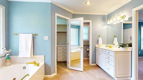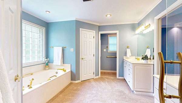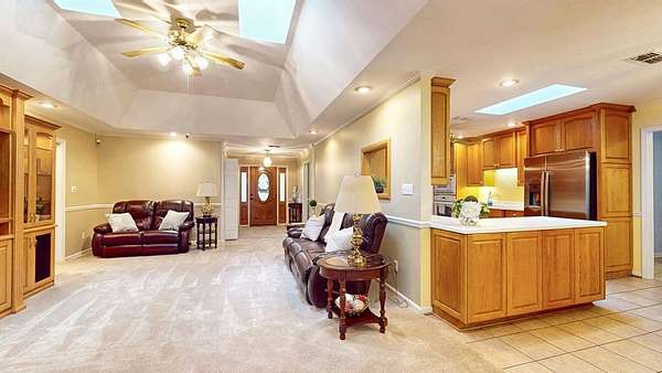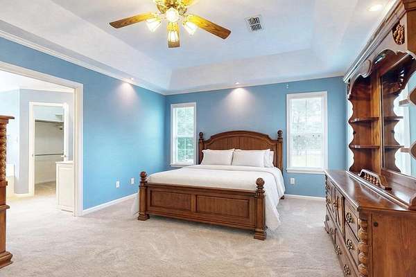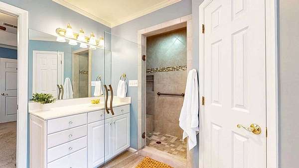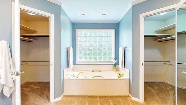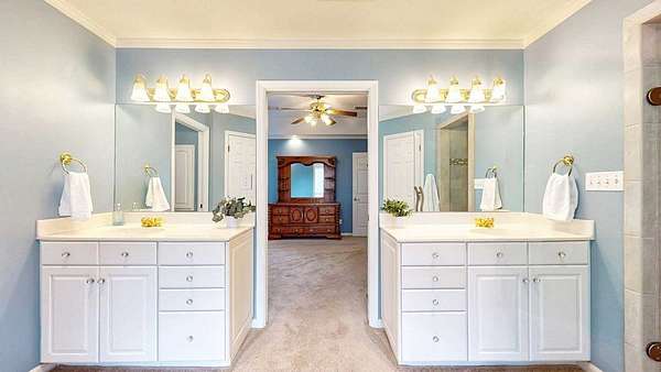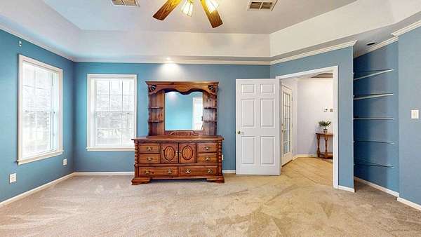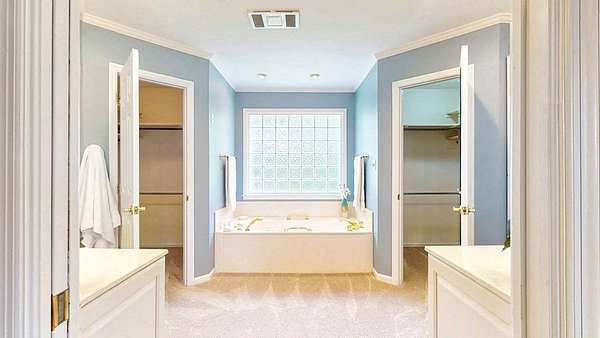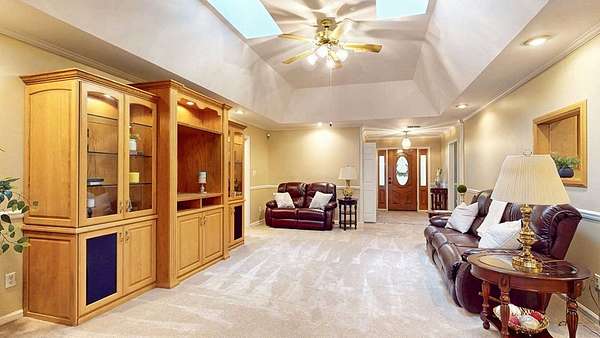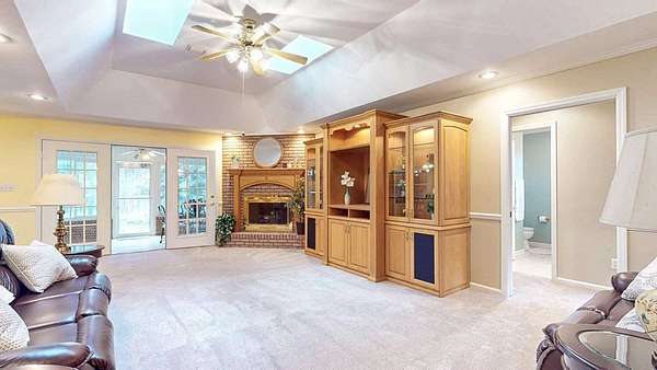 - Blinds, Built-In Bookcases, Ceiling Fan(s), Ceramic Tile Bath, Double Vanities, Entrance Foyer, Fireplace, Fireplace W/Gas Logs, Hard Surface Countertops, High, Laundry Room, Light & Airy, Luxury Shower, Main Level Master Suite, Master Bedroom Walk-In Closet, Moulding, Programmable Thermostat, Recessed Lighting, Separate Shower, Sheetrock, Sitting Room/Area, Skylight(s), Trey, Tub/Shower Combo, Walk-In Closets